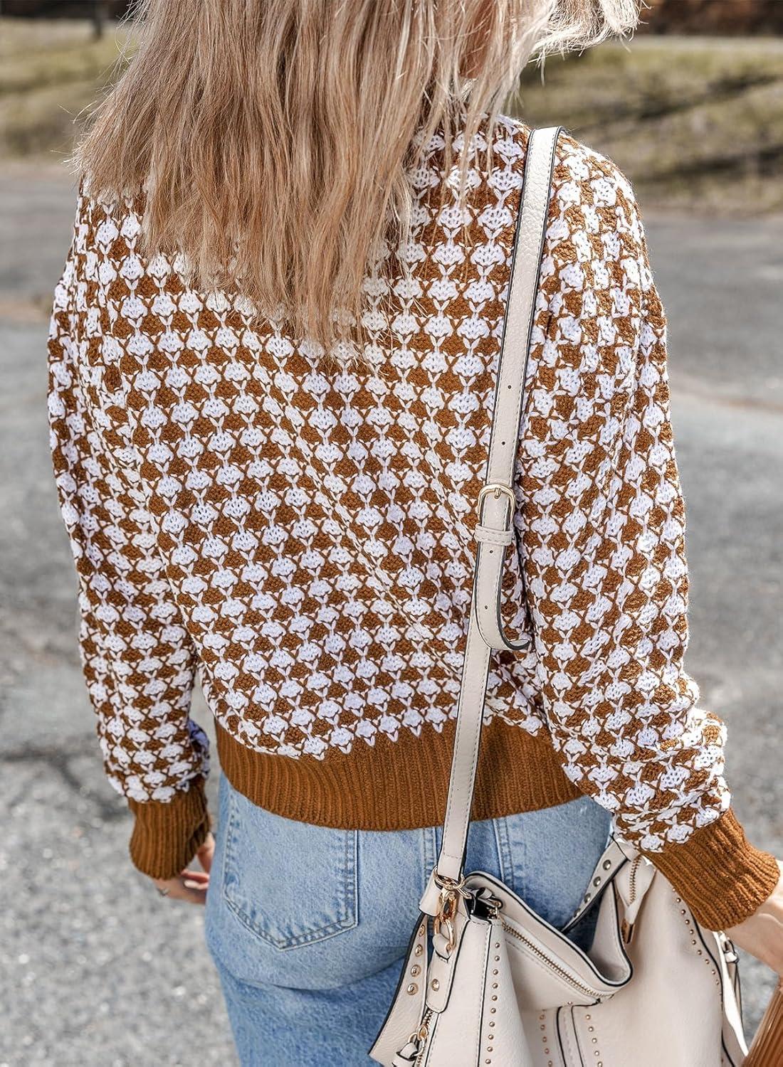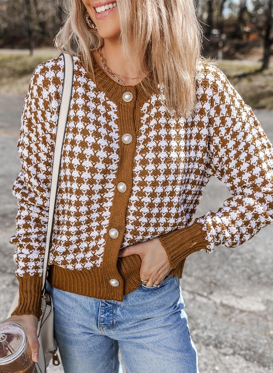 Save up to 40% on Dokotoo Cardigan Sweaters for Women V Neck Button Down Long Sleeve Plaid Knit Cardigans Sweater Tops(Brown) styles during our end-of-season sale.