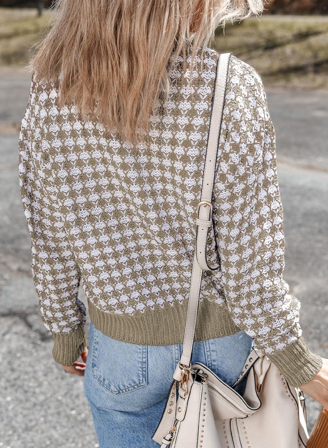 Dokotoo Cardigan Sweaters for Women V Neck Button Down Long Sleeve Plaid Knit Cardigans Sweater Tops(Pink)