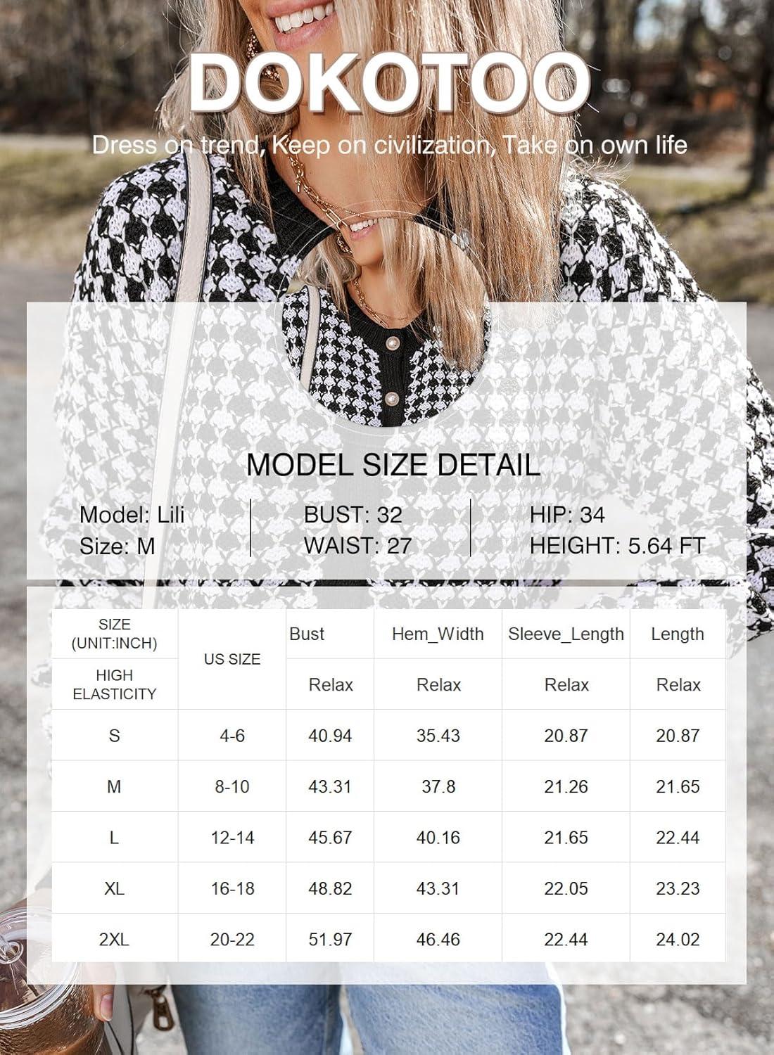 imageDokotoo Cardigan Sweaters for Women V Neck Button Down Long Sleeve Plaid Knit Cardigans Sweater TopsBlue