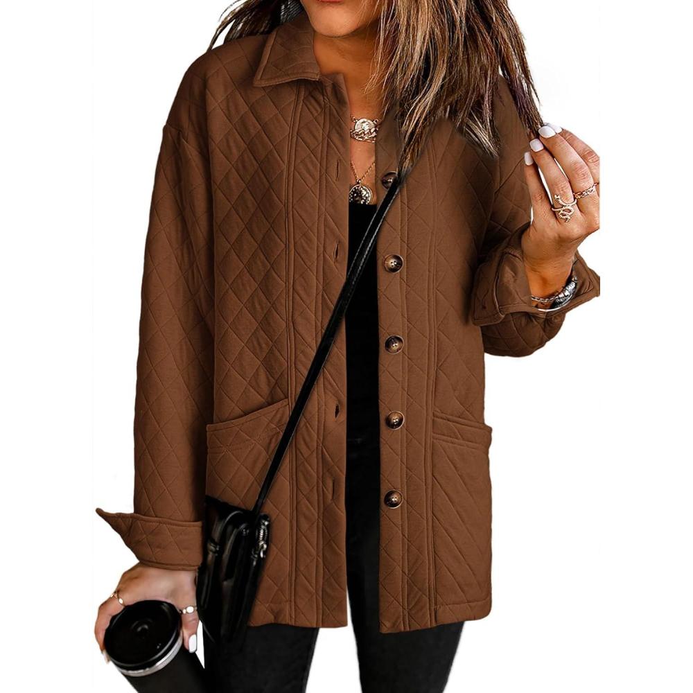 Dokotoo Casual Quilted Jackets for Women Button Down Collared Long Sleeve Shirts Fall Winter Jackets with Pockets 2025(Chestnut)