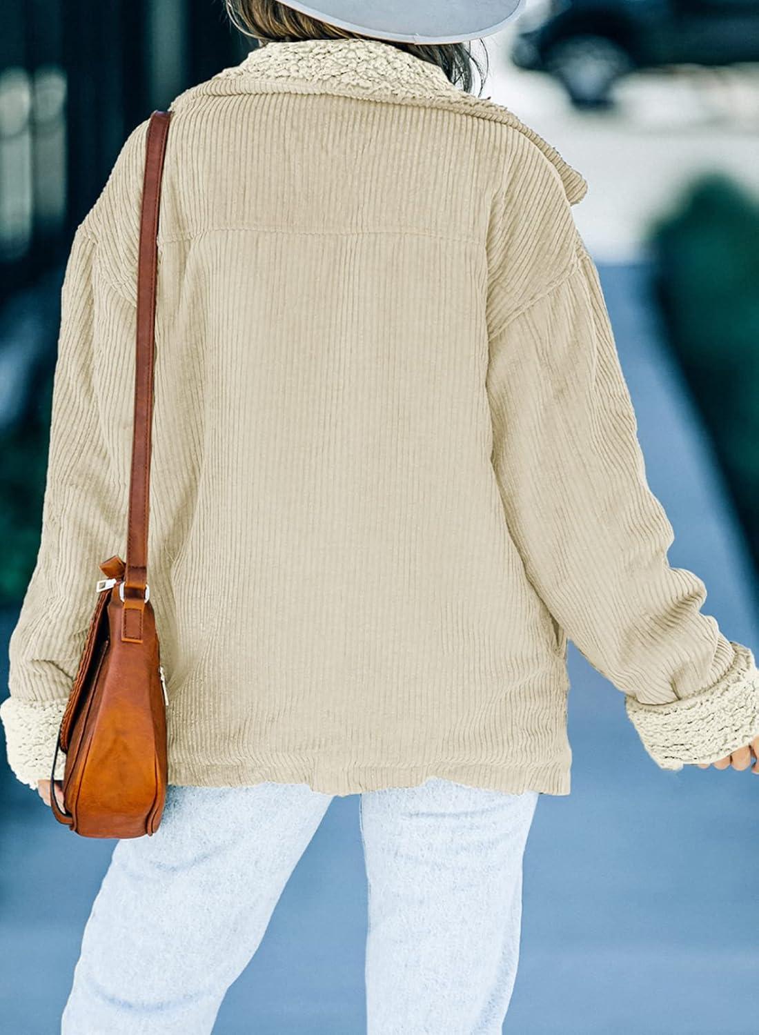 Dokotoo Corduroy Sherpa Jacket for Women Button Down Fleece Fur Collar Winter Warm Coat(A Apricot)