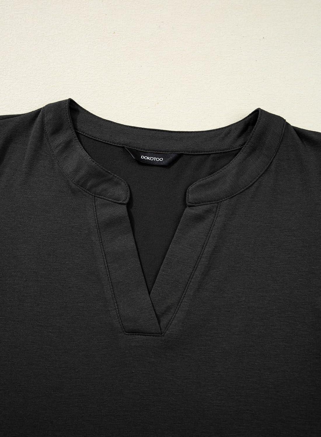 Dokotoo Fall Dresses for Women 2025 Casual V Neck Puff Long Sleeve Elegant Flowy Swing Mini Dress(Black)
