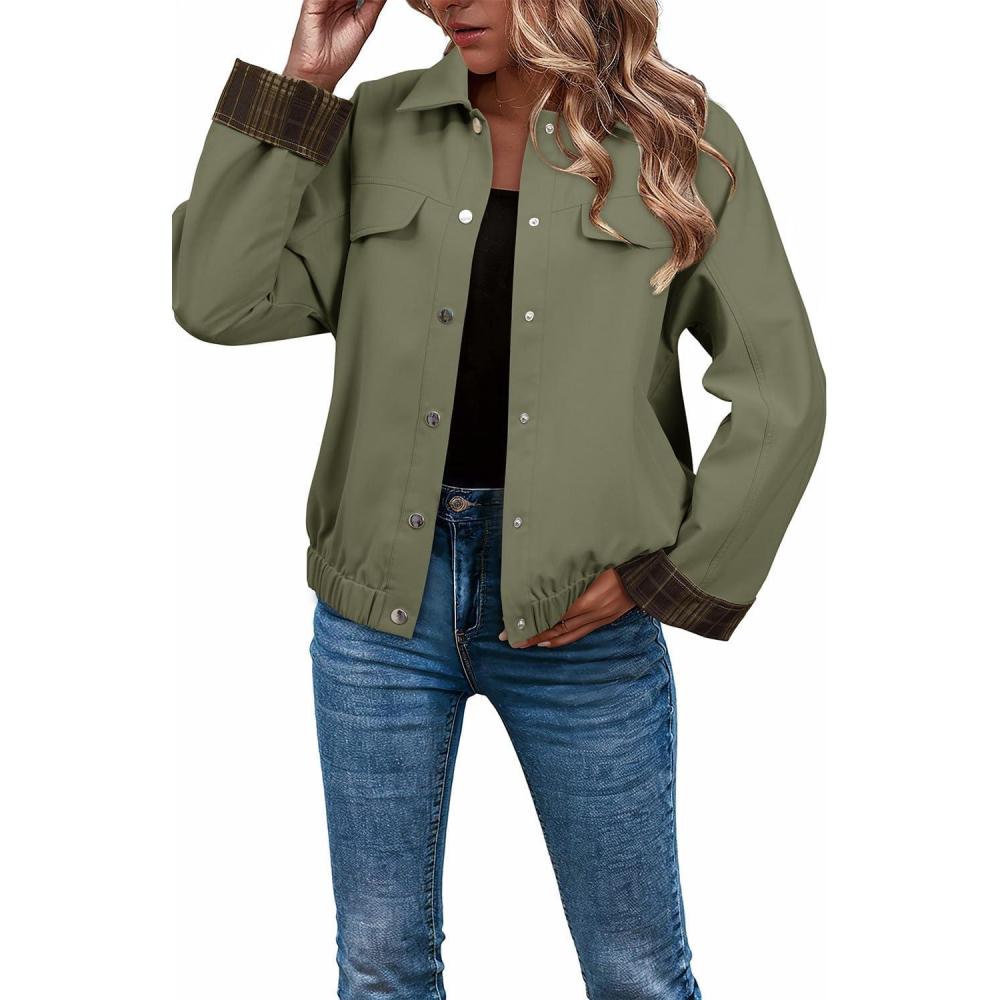 Dokotoo Fall Jackets for Women 2025 Oversized Fashion Snap Button Color Blocked Sleeves Fall Casual Coats(Vineyard Green)