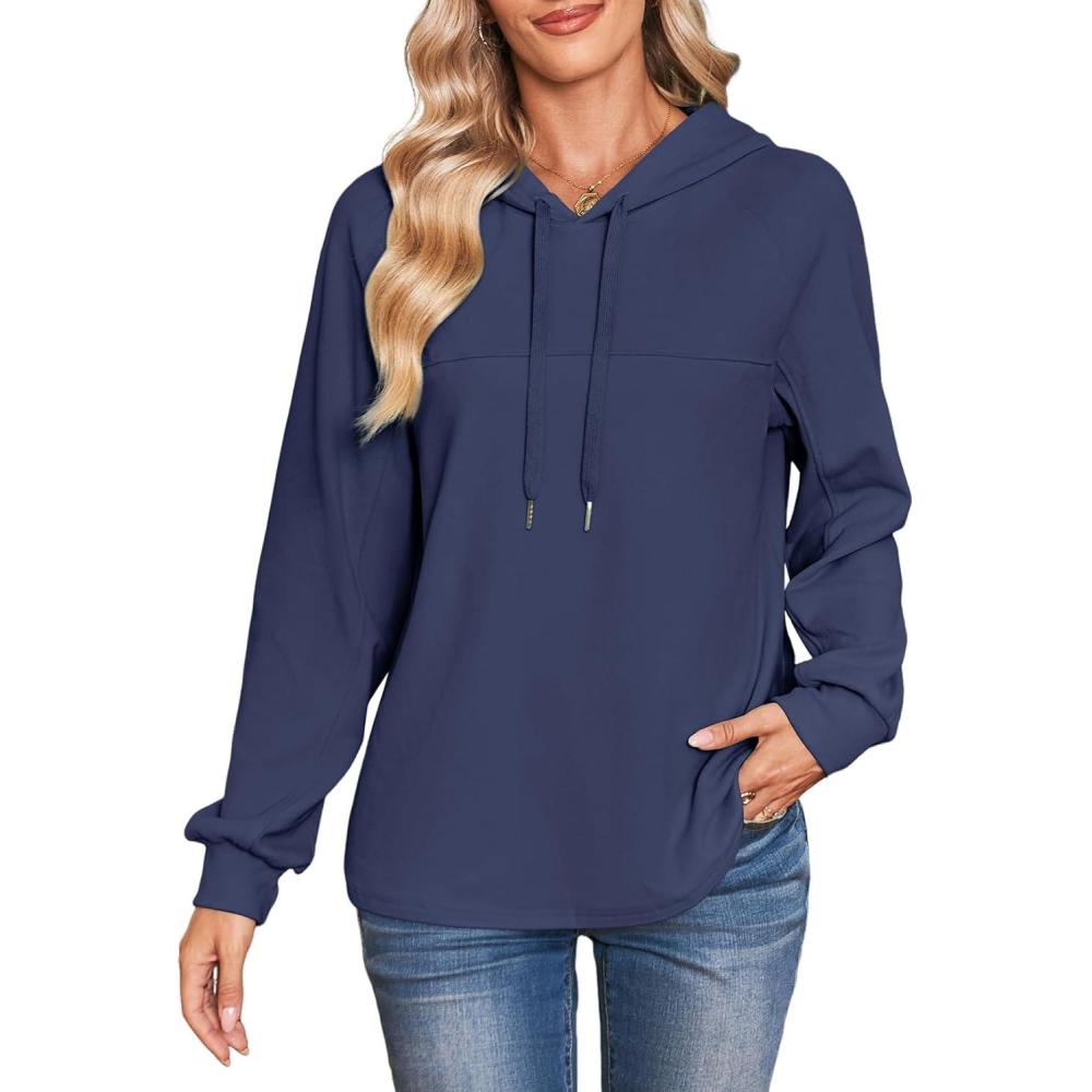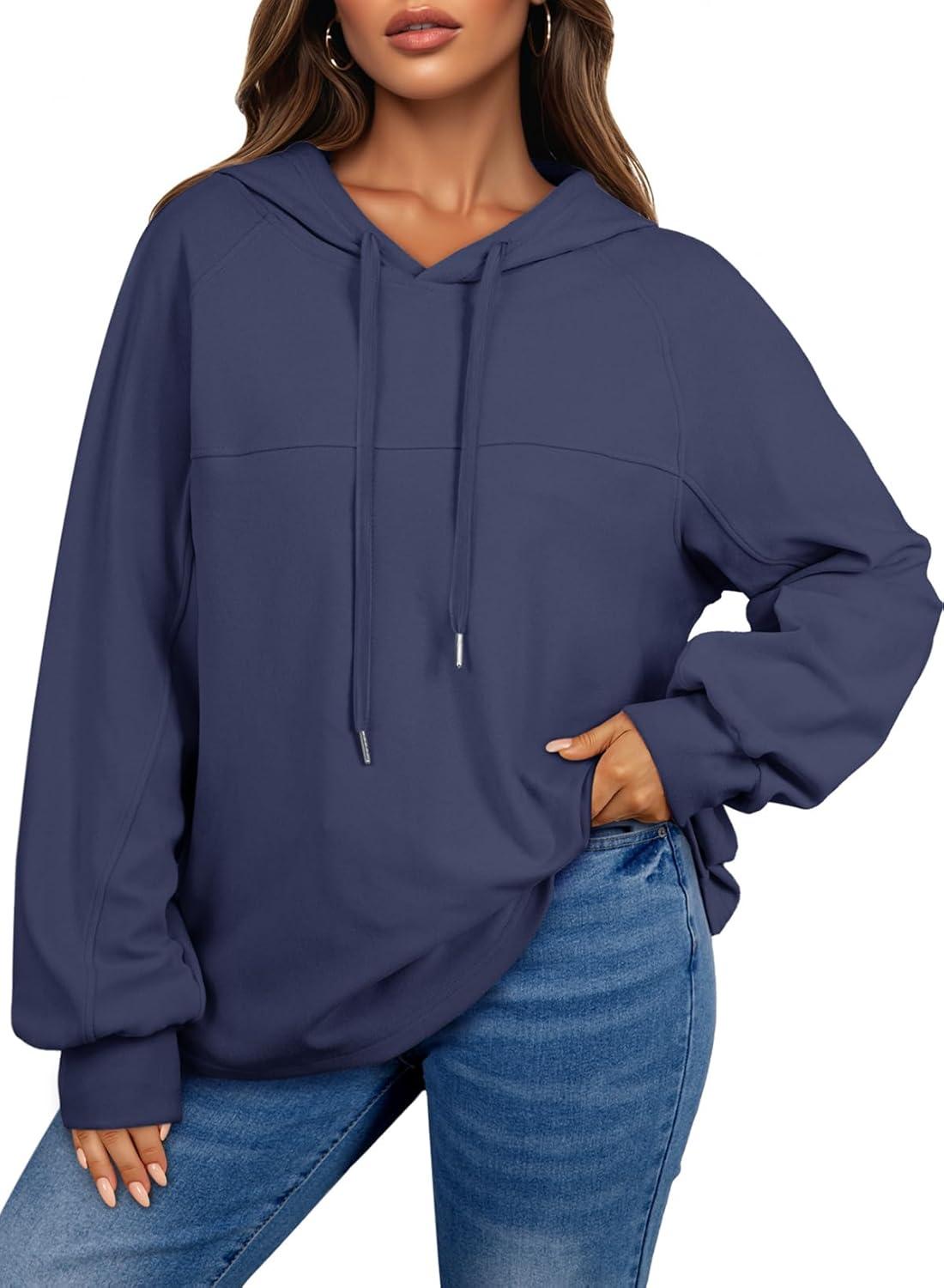 Dokotoo Hoodies for Women Soft Long Sleeve Casual Hoodie Oversized Sweatshirt Lightweight Knit Pullover Hooded Tops(Dirty Blue)