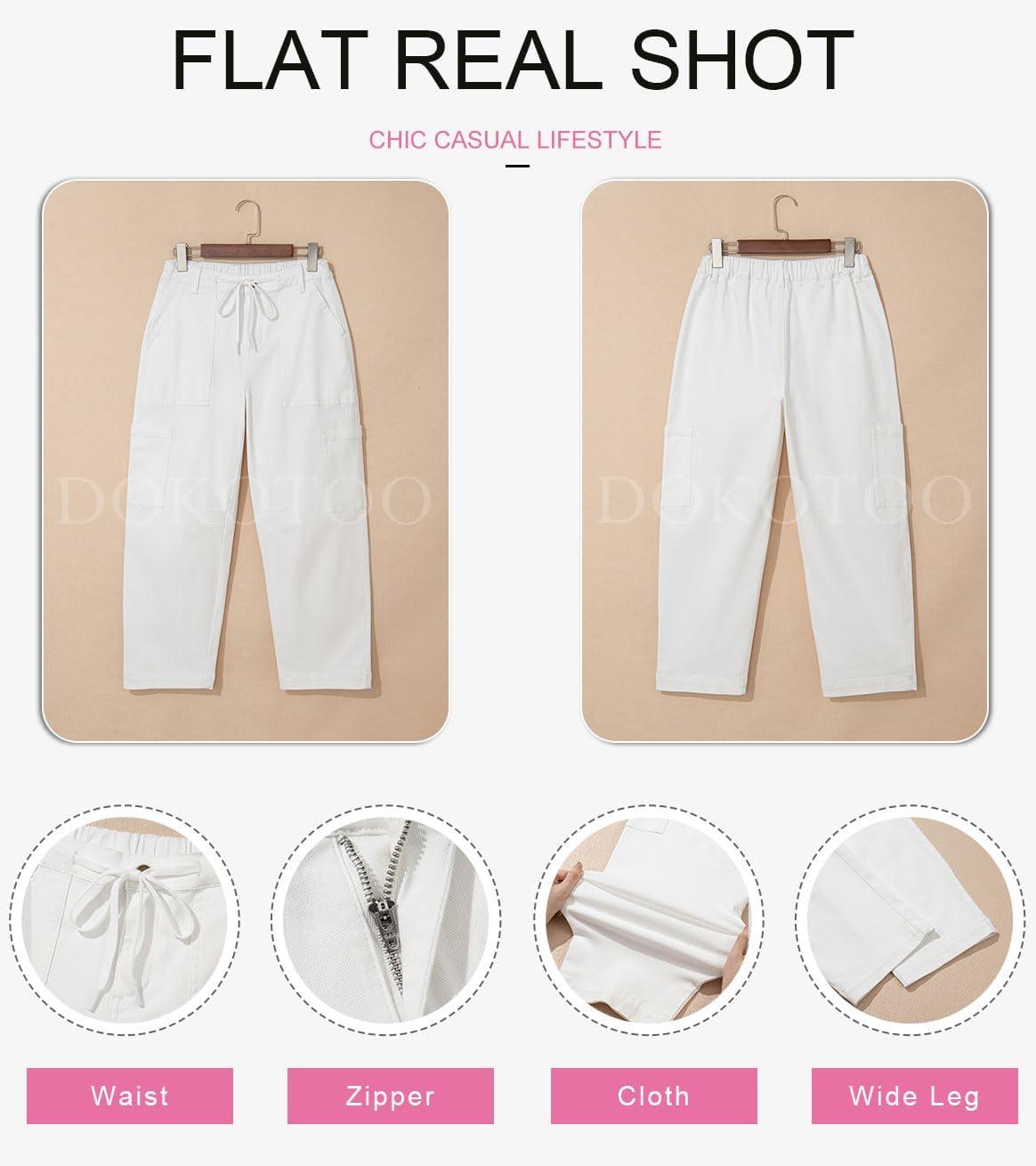 Get the Dokotoo Jeans for Women Casual High Waisted Straight Wide Leg Pants Loose Cargo Denim Pants with Pockets(White) you want at a price you can afford with our markdown sale.