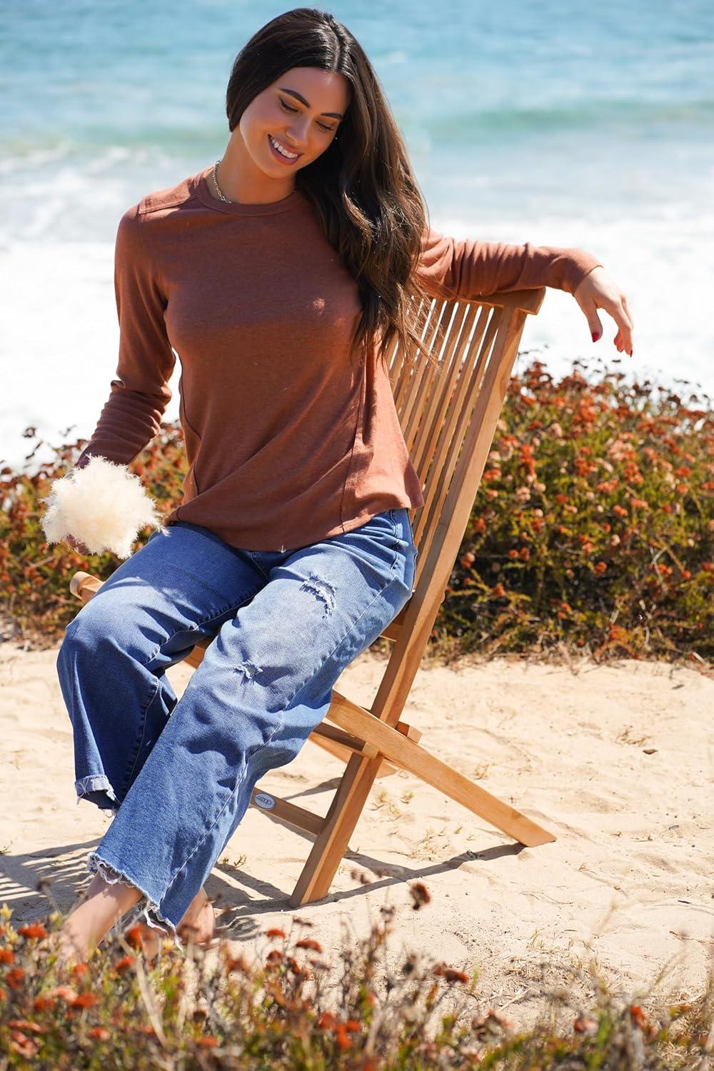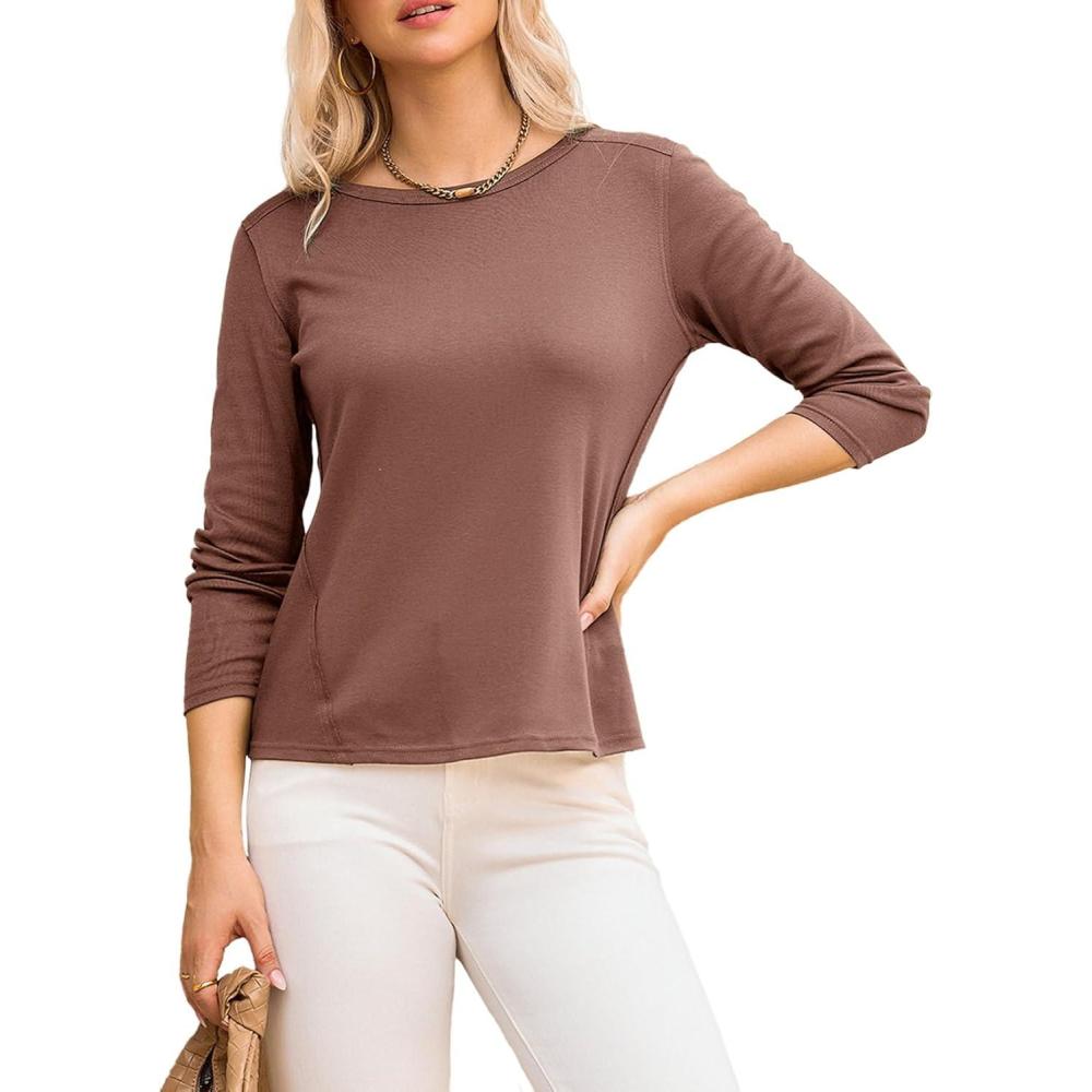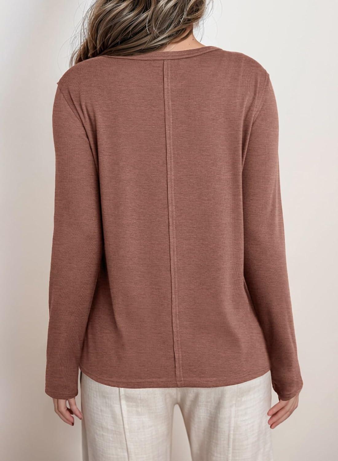 Dokotoo Long Sleeve Shirts Crewneck Womens Tops 2025 Fall Outfits Comfort Basic Tees Fashion Clothing(Chestnut)