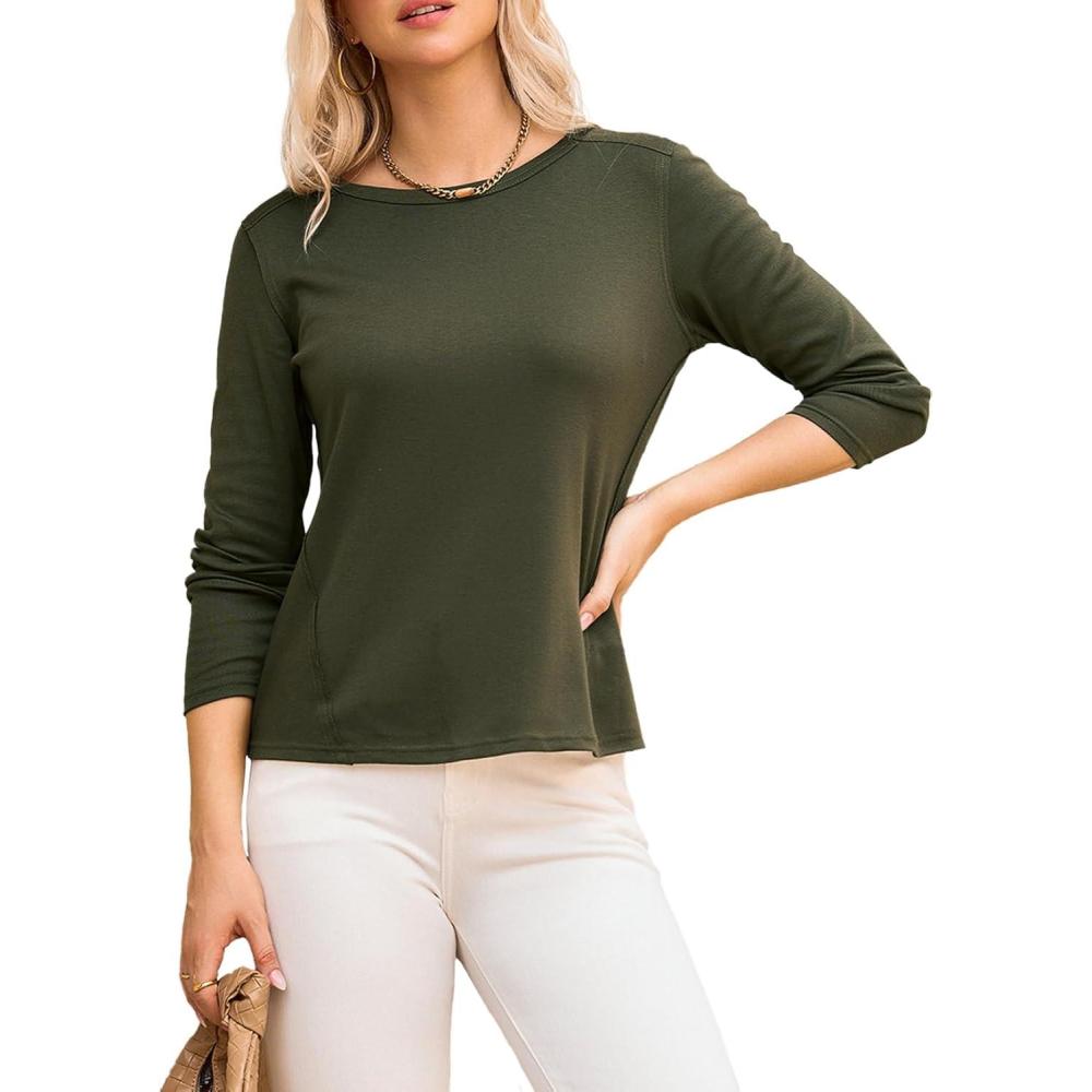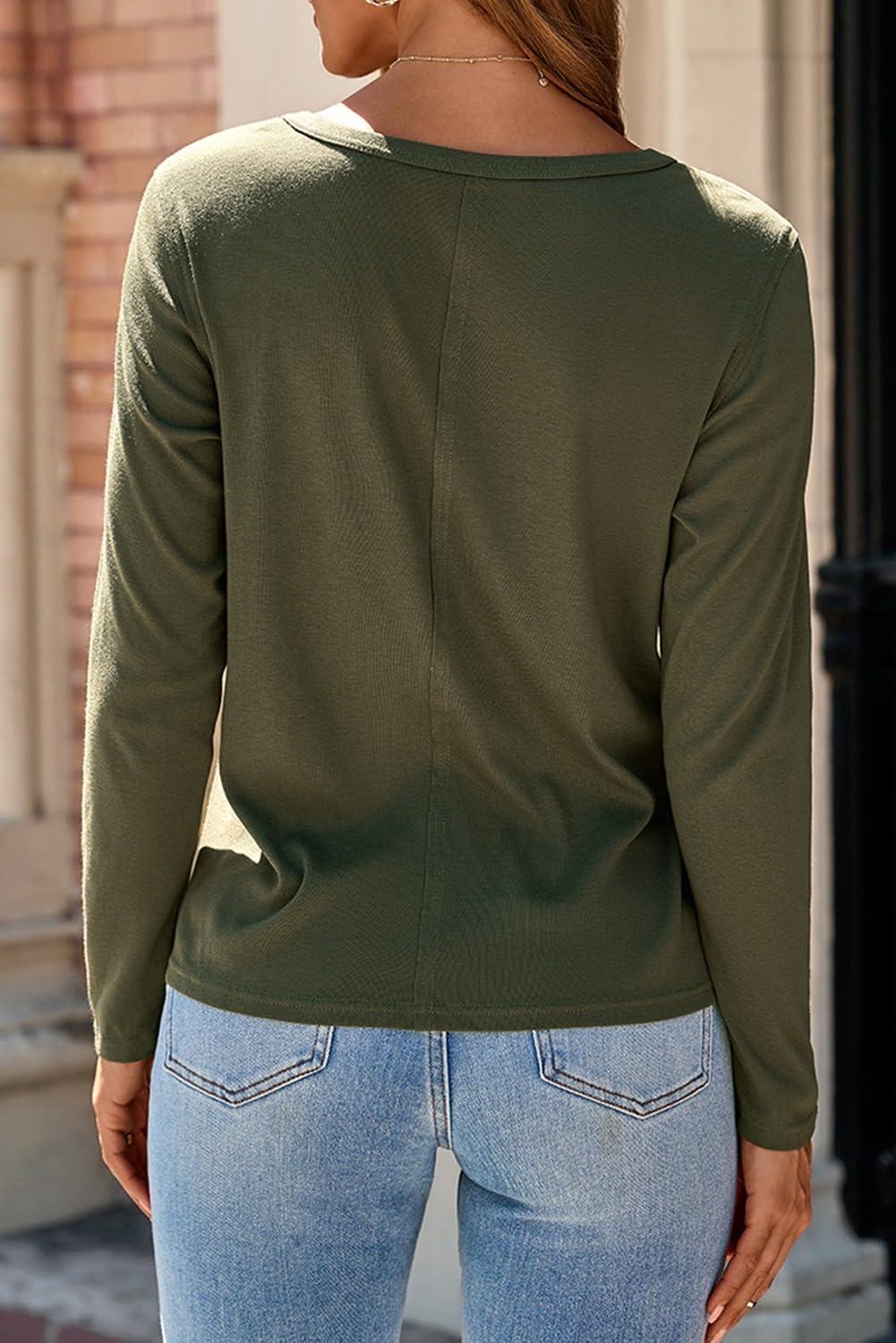 Dokotoo Long Sleeve Shirts Crewneck Womens Tops 2025 Fall Outfits Comfort Basic Tees Fashion Clothing(Green)