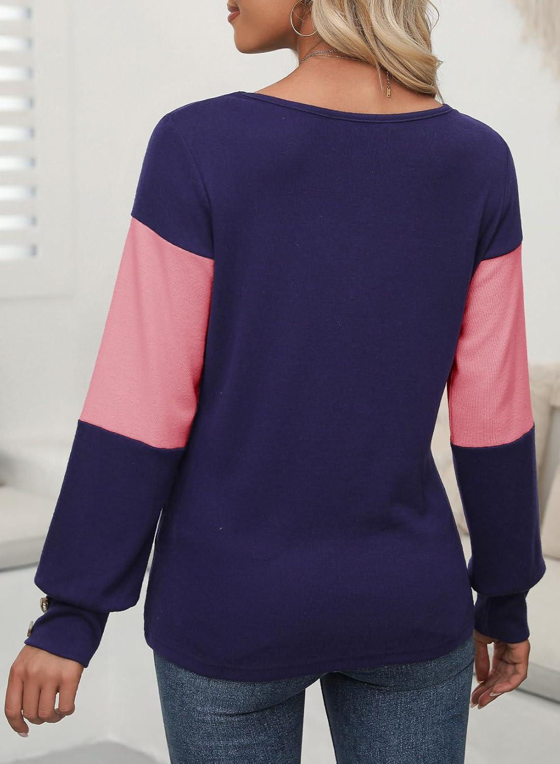 Dokotoo Long Sleeve Shirts for Women Fall Outfits V Neck Shirts Button Tunic Tops Fashion Winter Clothing(Canton)