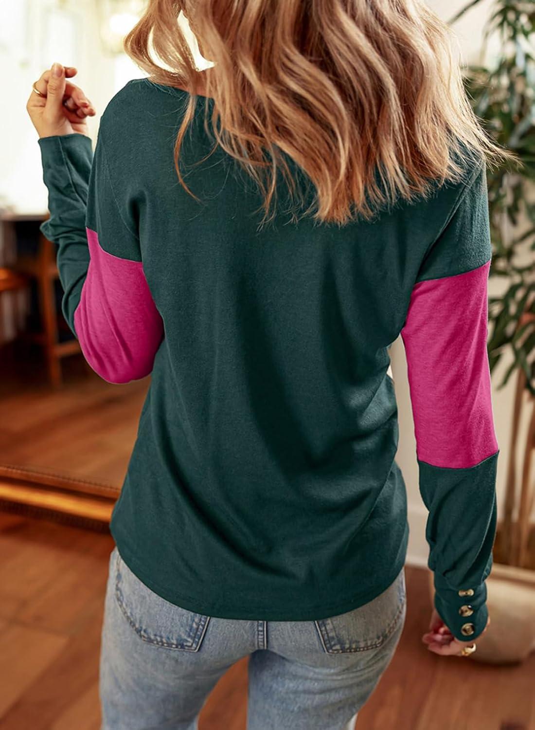 Dokotoo Long Sleeve Shirts for Women Fall Outfits V Neck Shirts Button Tunic Tops Fashion Winter Clothing(V1 Evergreen)