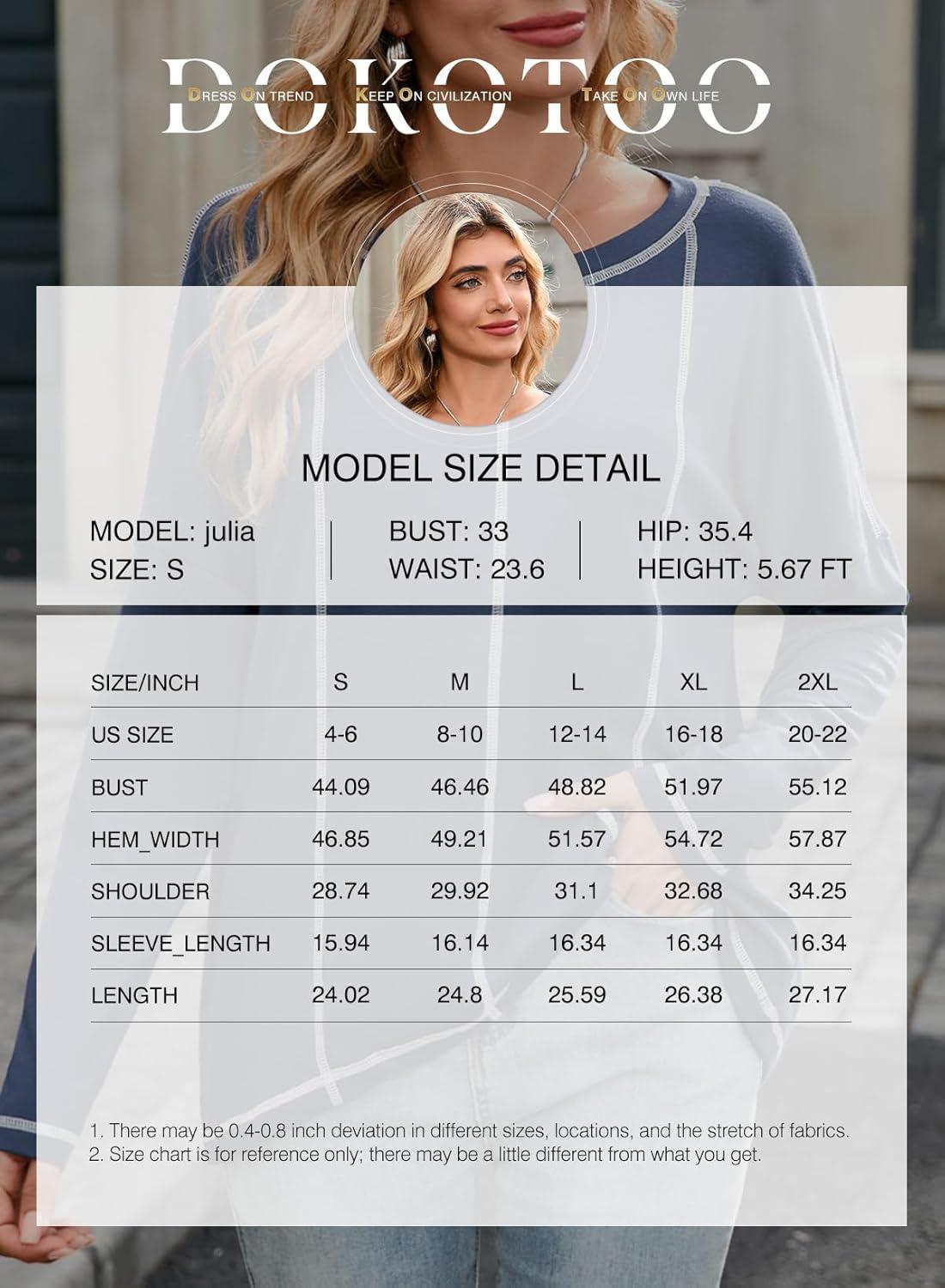 Dokotoo Long Sleeve Shirts Split Back Womens Tops Fall Outfits 2025 Fashion Casual Womens Clothing(Blue)