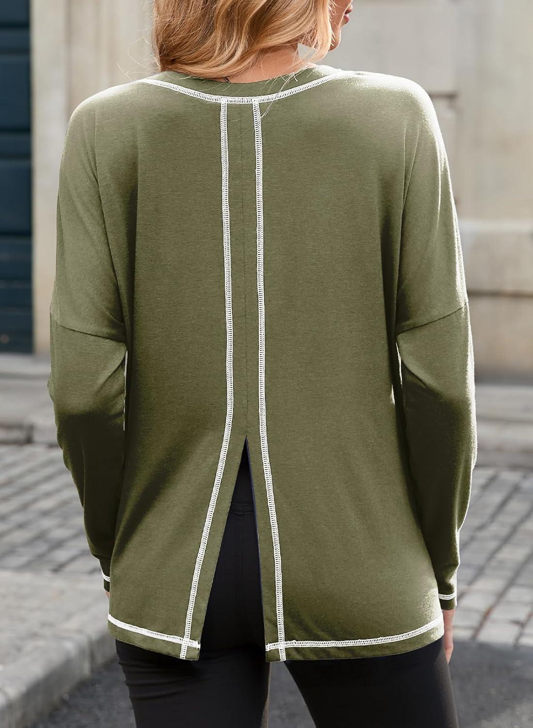 Dokotoo Long Sleeve Shirts Split Back Womens Tops Fall Outfits 2025 Fashion Casual Womens Clothing(Green)