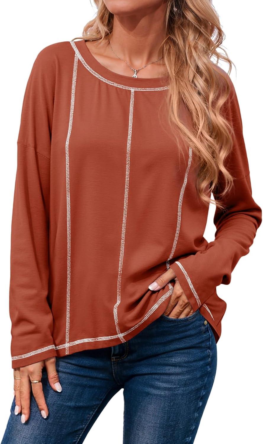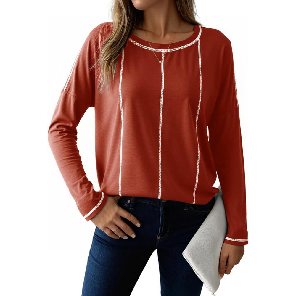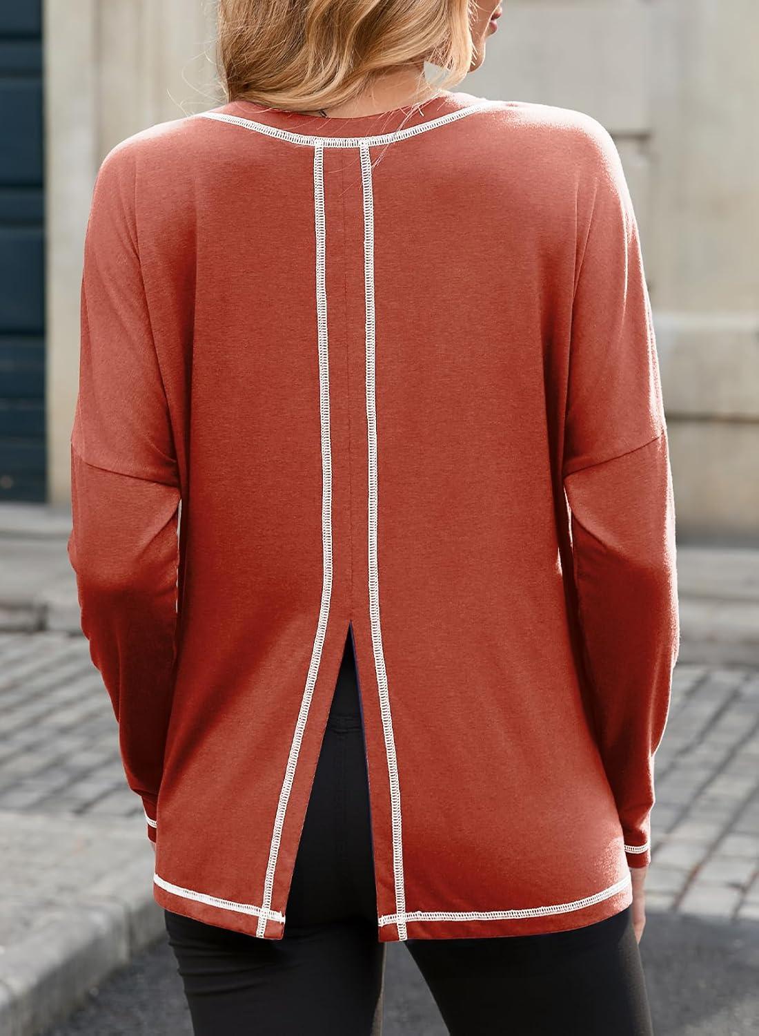 Dokotoo Long Sleeve Shirts Split Back Womens Tops Fall Outfits 2025 Fashion Casual Womens Clothing(Red)