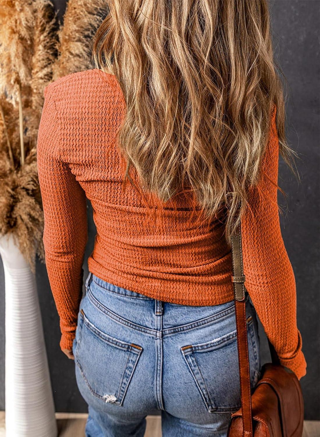Save up to 40% on Dokotoo Long Sleeve Tops for Women Spring Fall 2025 Womens V Neck Sexy T Shirts for Women Fitted Shirts Tight Basic Tee(Orange) styles during our end-of-season sale.