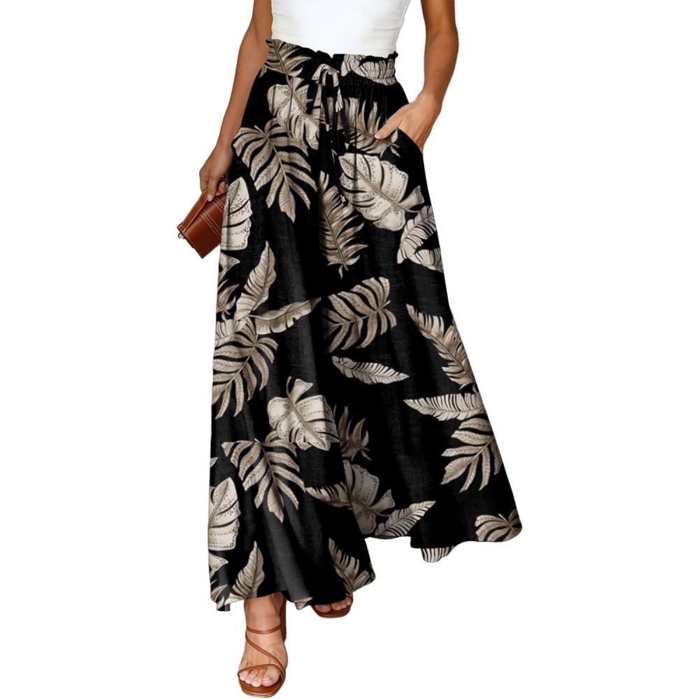 Dokotoo Pants for Women Casual Elastic Waist Wide Leg Pants with Pockets(2 Black)