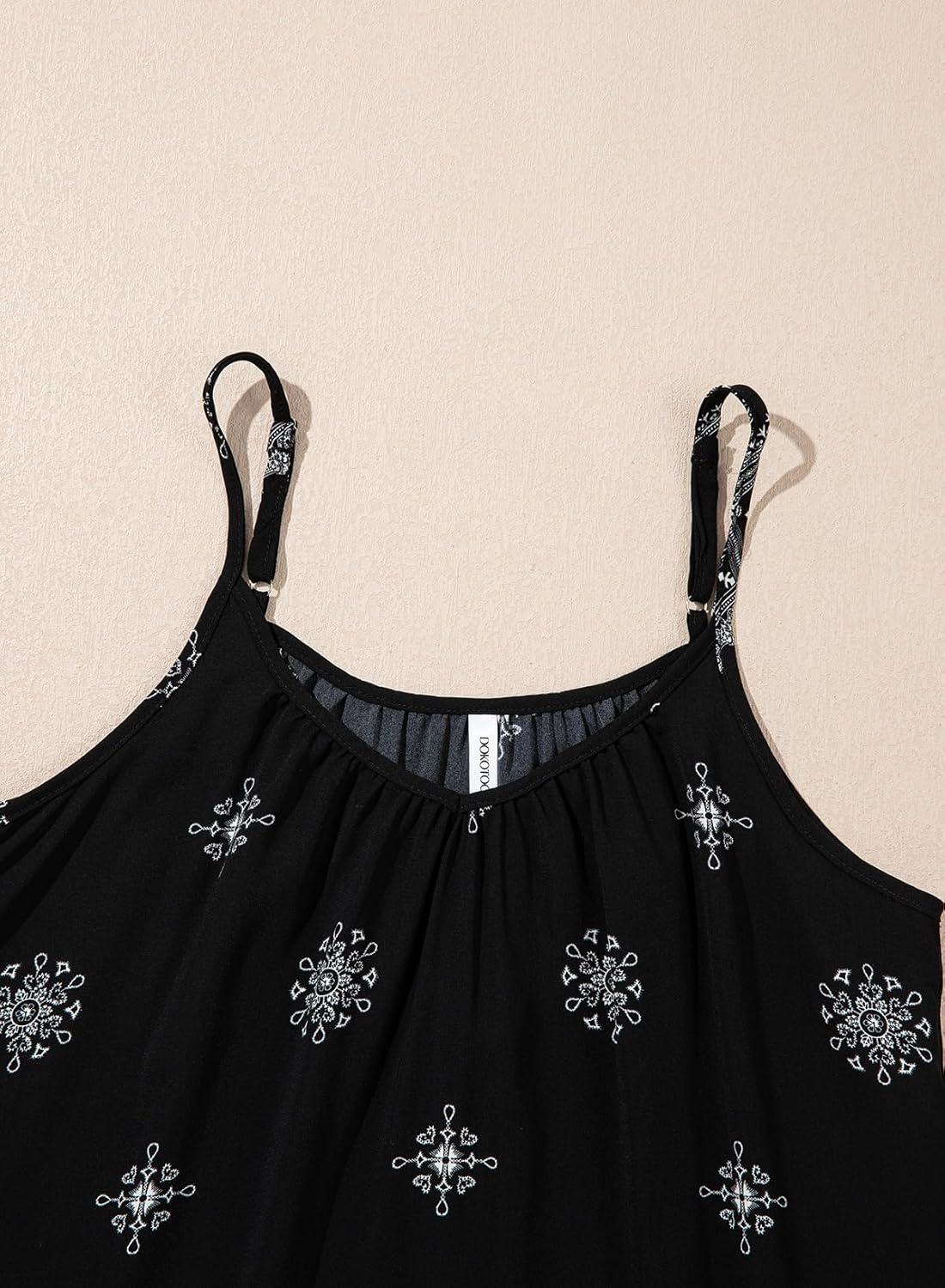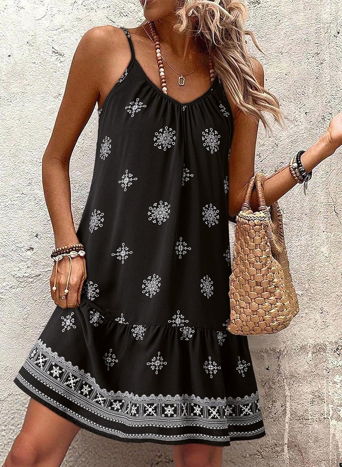 Dokotoo Summer Dresses for Women 2025 Spaghetti Strap Sexy Deep V Neck Dress Smocked Ruffle Flowy Boho Dresses(Black)