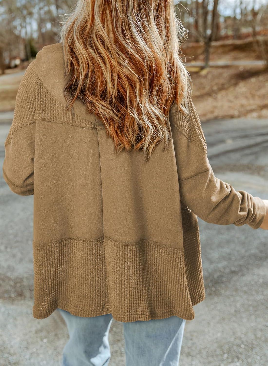 Dokotoo Waffle Knit Hoodies for Womens Zip Up Jackets 2025 Drawstring Fall Casual Jackets(No Pockets-camel)