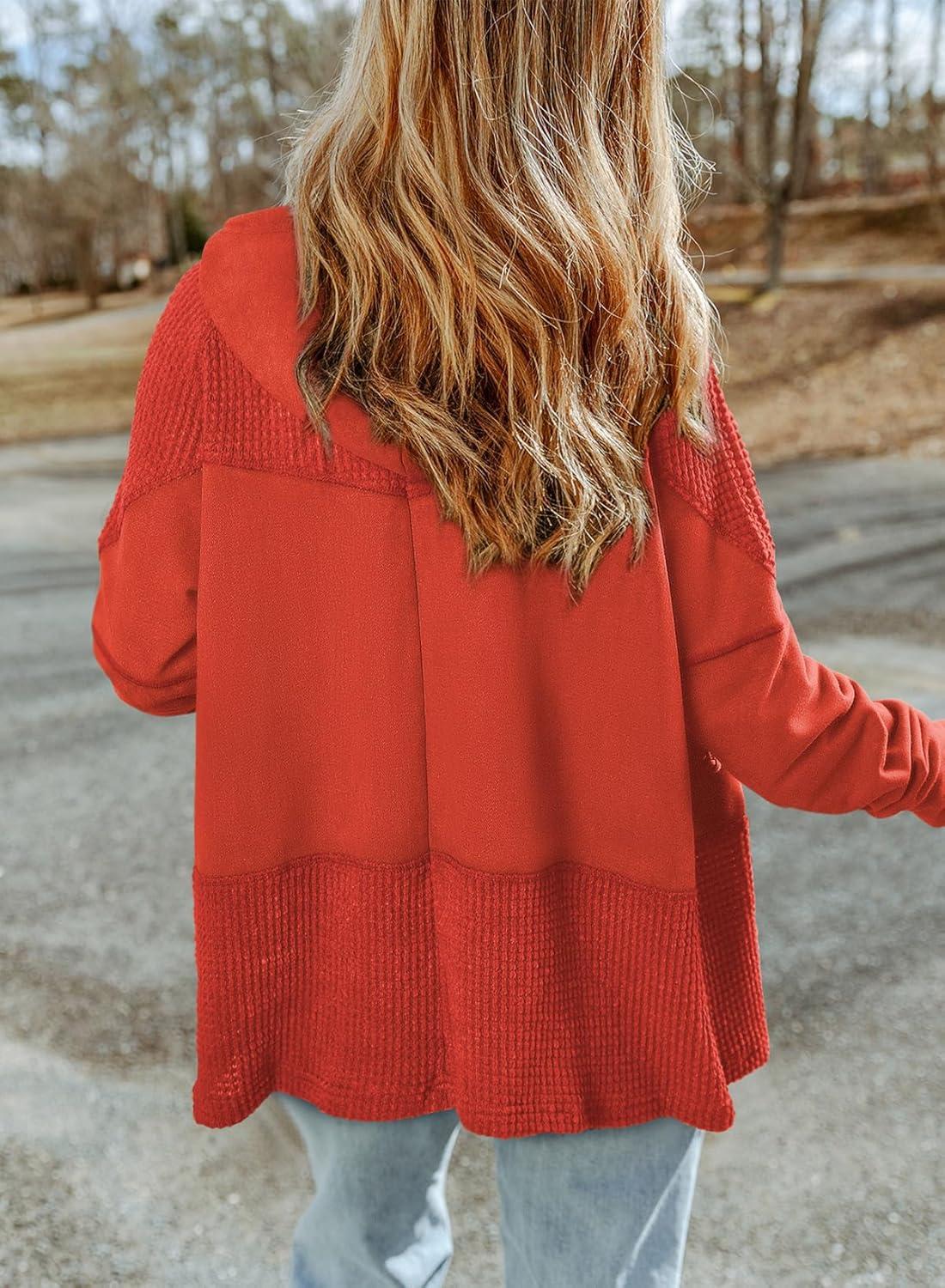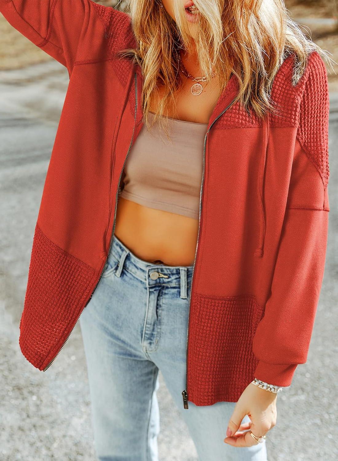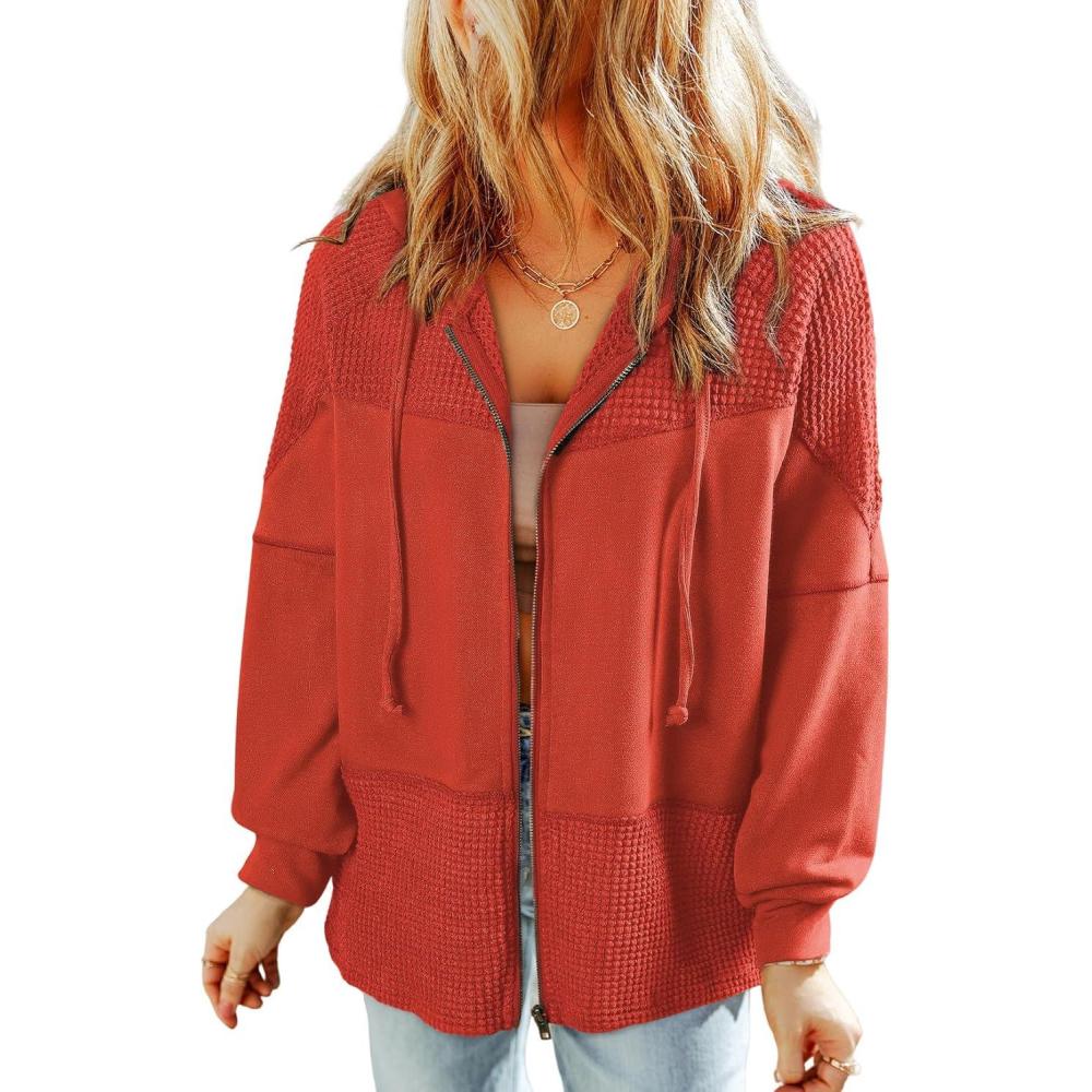 Dokotoo Waffle Knit Hoodies for Womens Zip Up Jackets 2025 Drawstring Fall Casual Jackets(No Pockets-gold Flame)