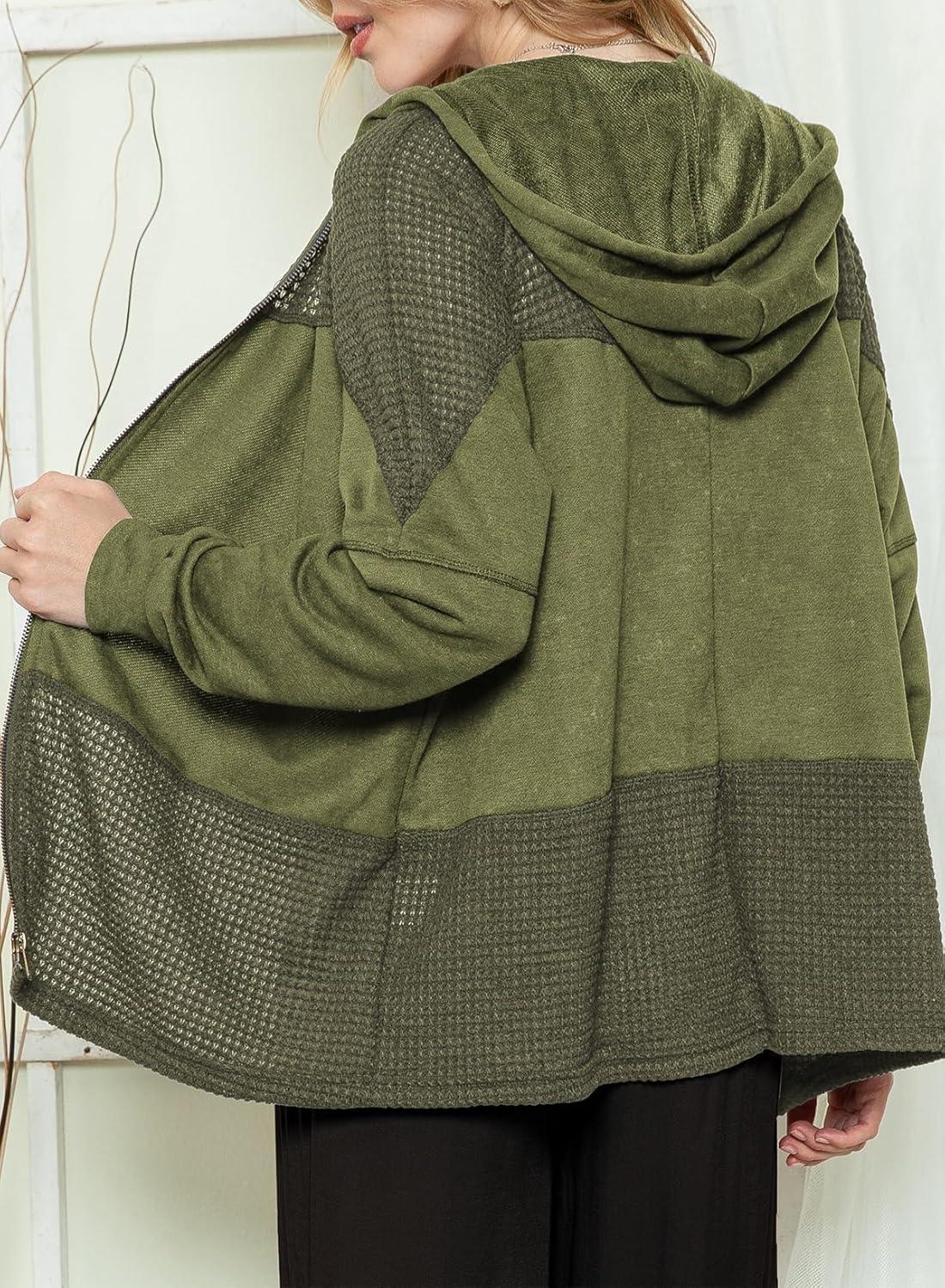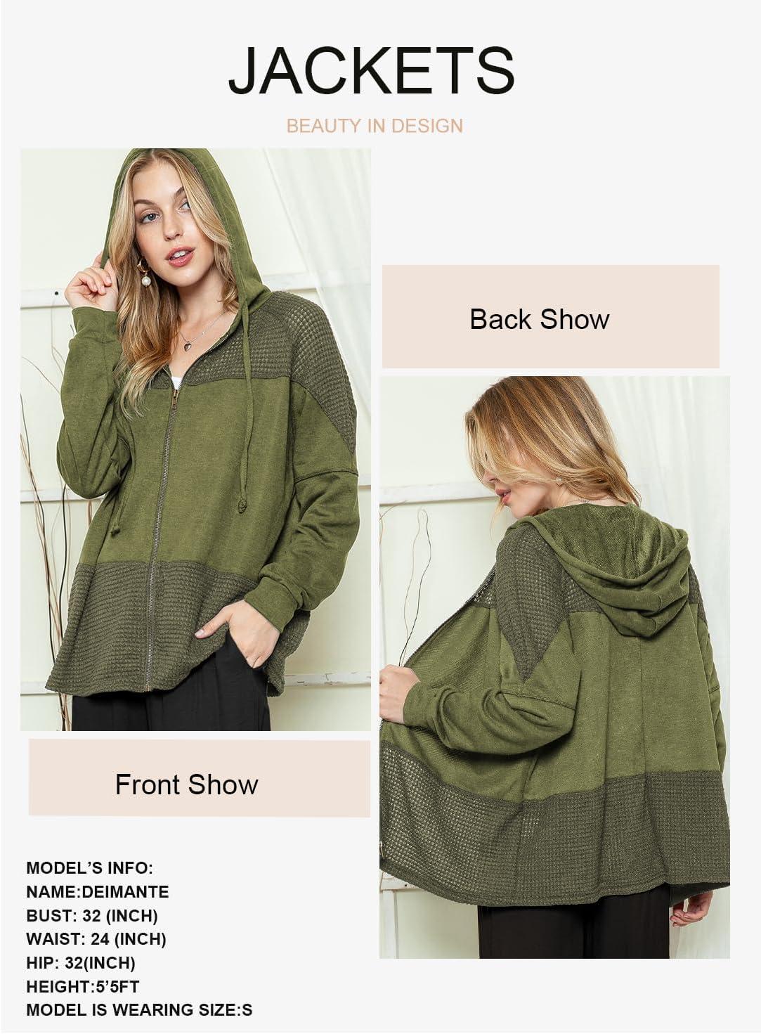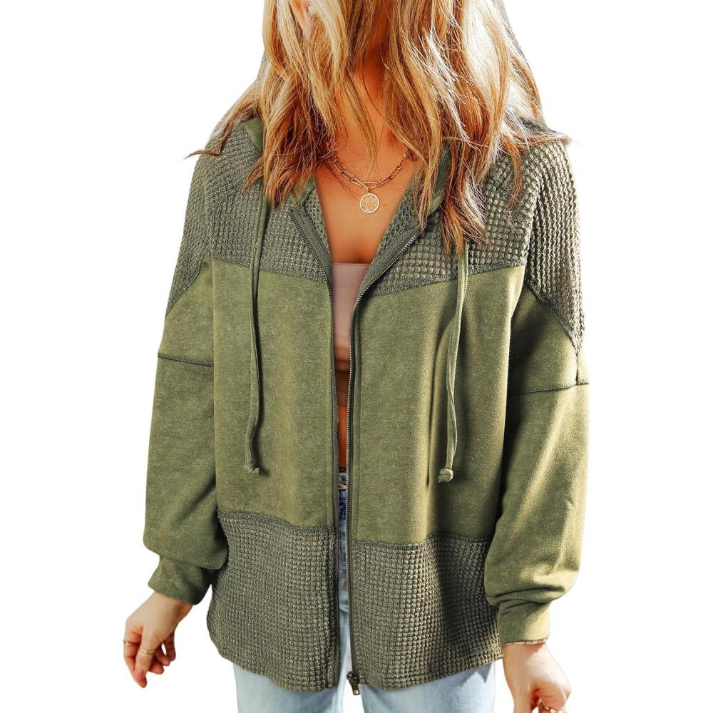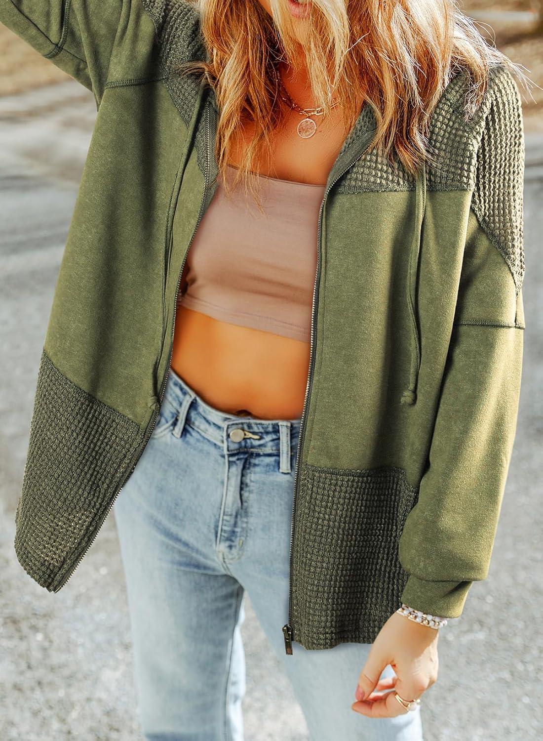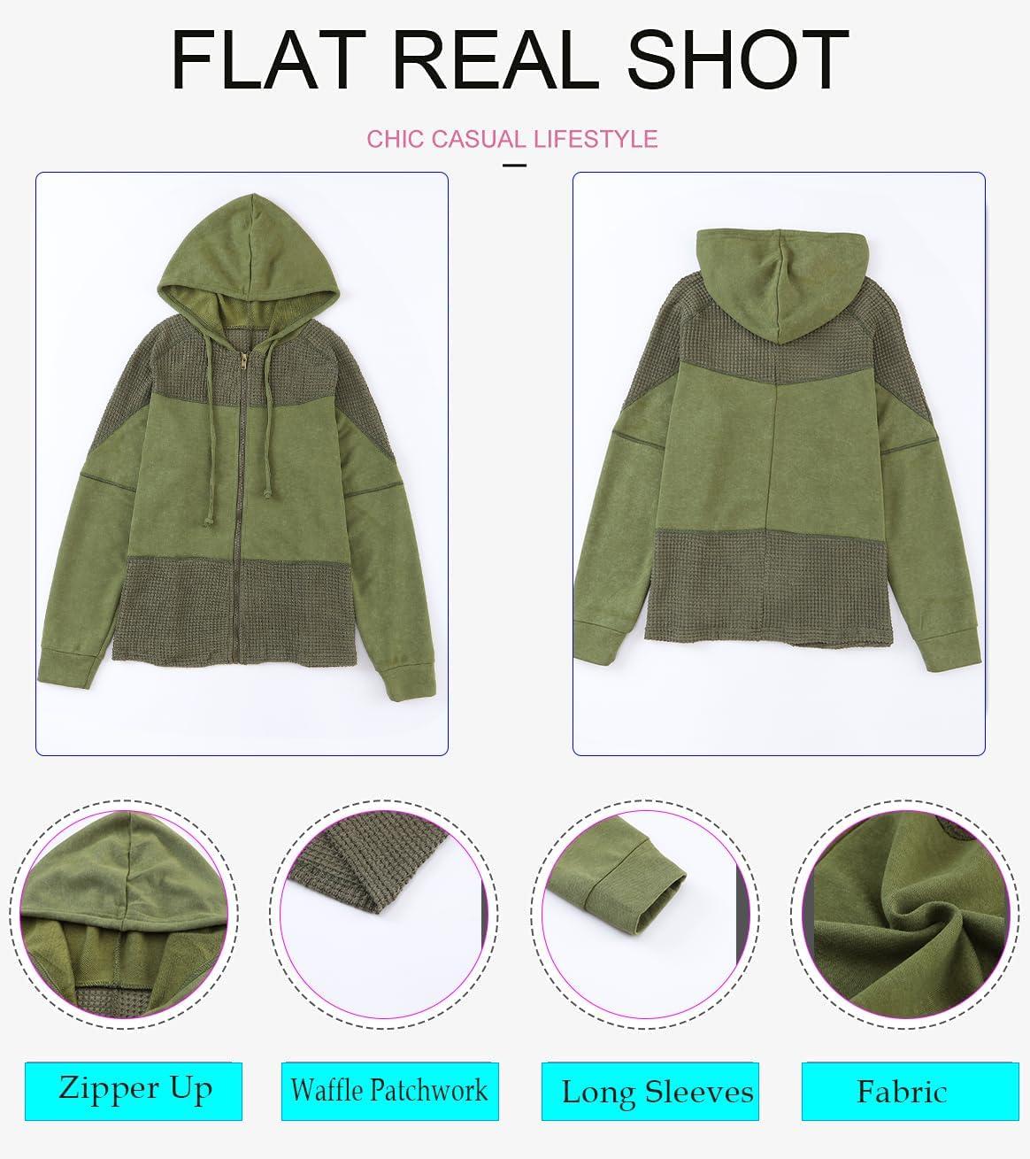 Dokotoo Waffle Knit Hoodies for Womens Zip Up Jackets 2025 Drawstring Fall Casual Jackets(No Pockets-laurel Green)