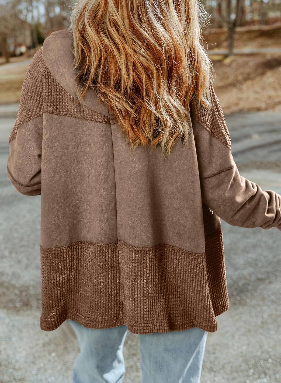 Dokotoo Waffle Knit Hoodies for Womens Zip Up Jackets 2025 Drawstring Fall Casual Jackets(Pockets-brown)