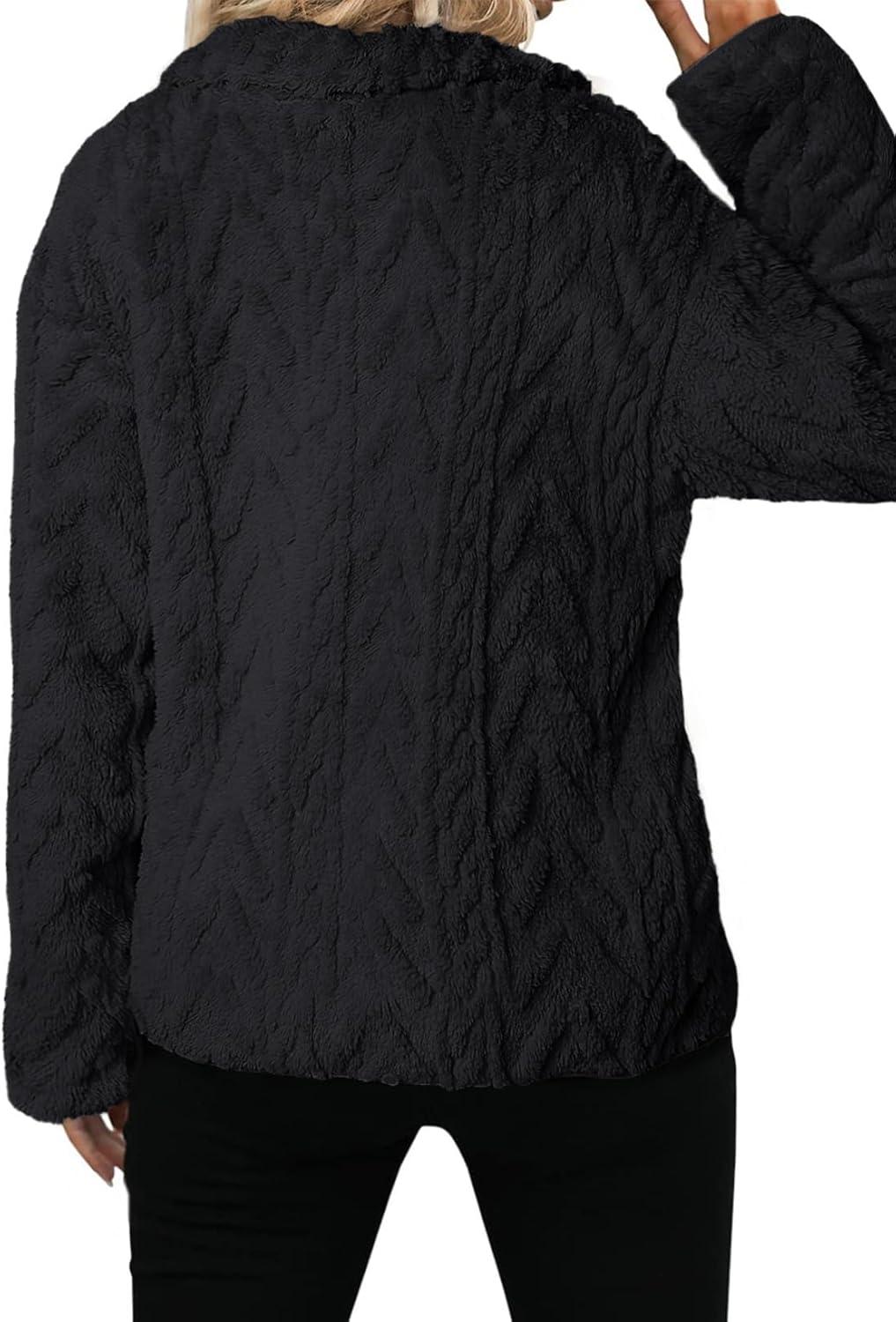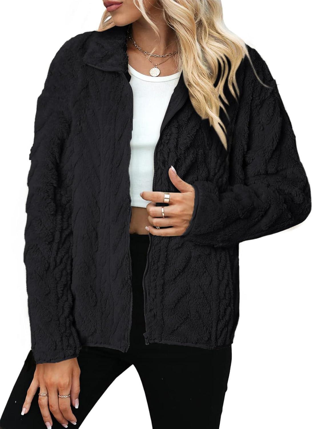 Dokotoo Winter Fleece Jacket for Women 2025 Zipper Stand Collar Casual Coats with Pockets(Black)