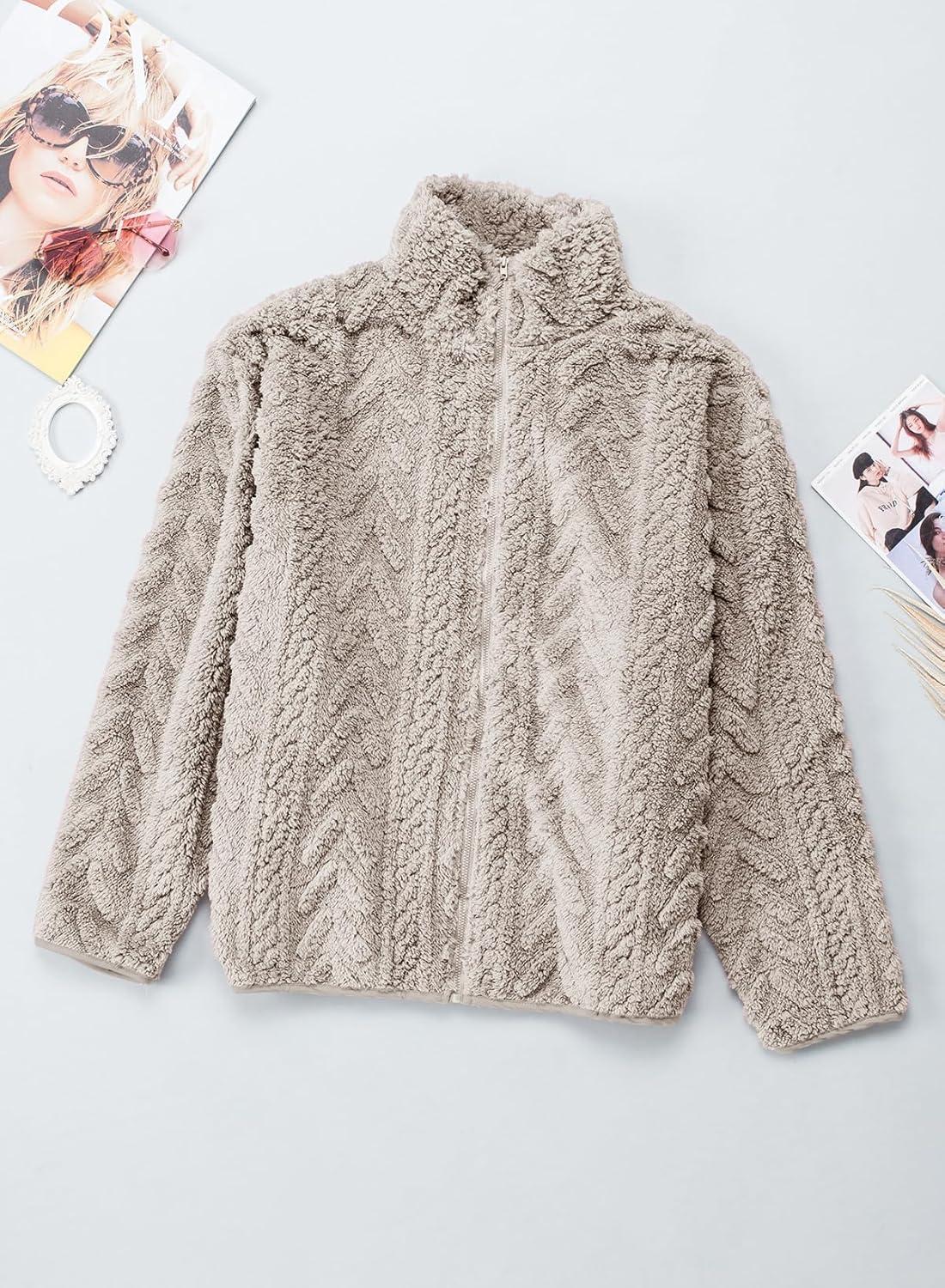 Dokotoo Winter Fleece Jacket for Women 2025 Zipper Stand Collar Casual Coats with Pockets(Khaki)