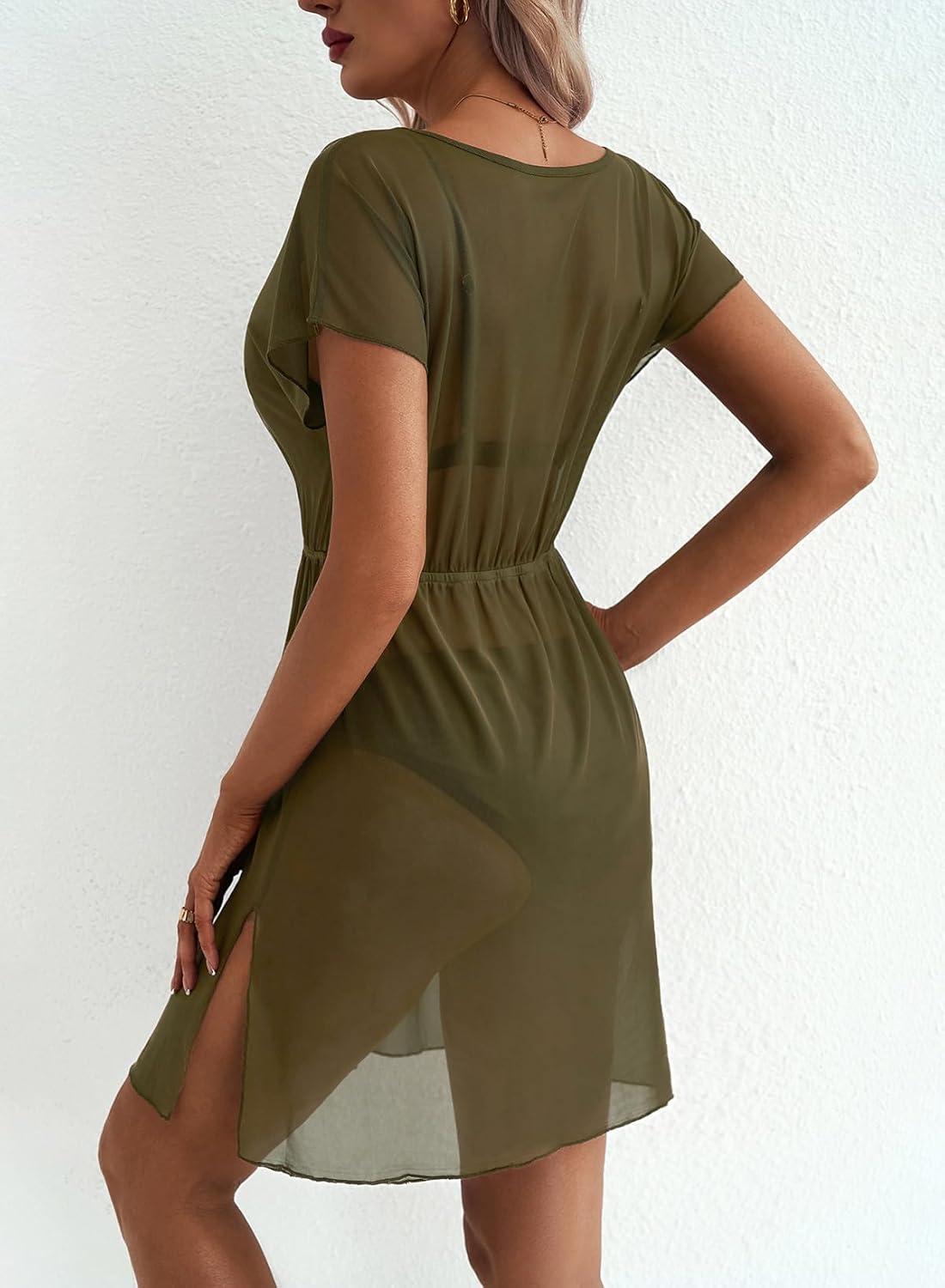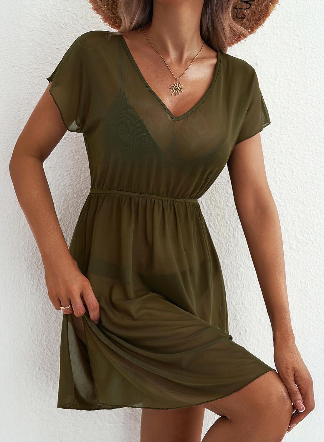 Dokotoo Women Swimsuit Swim Cover Up 2025 Summer Bathing Suit Swimwear Mesh Beach Dress Vacation Outfits(A Green)