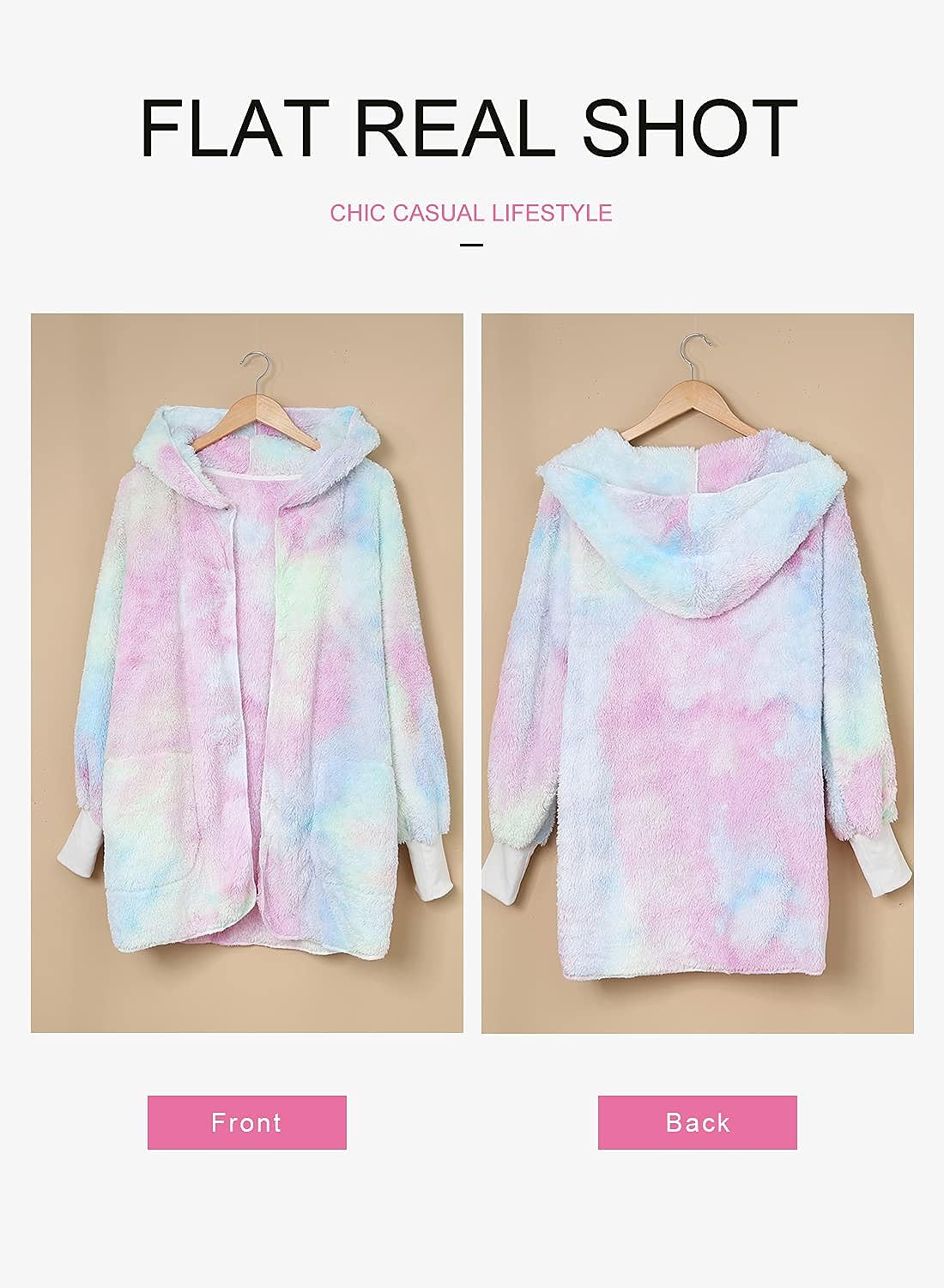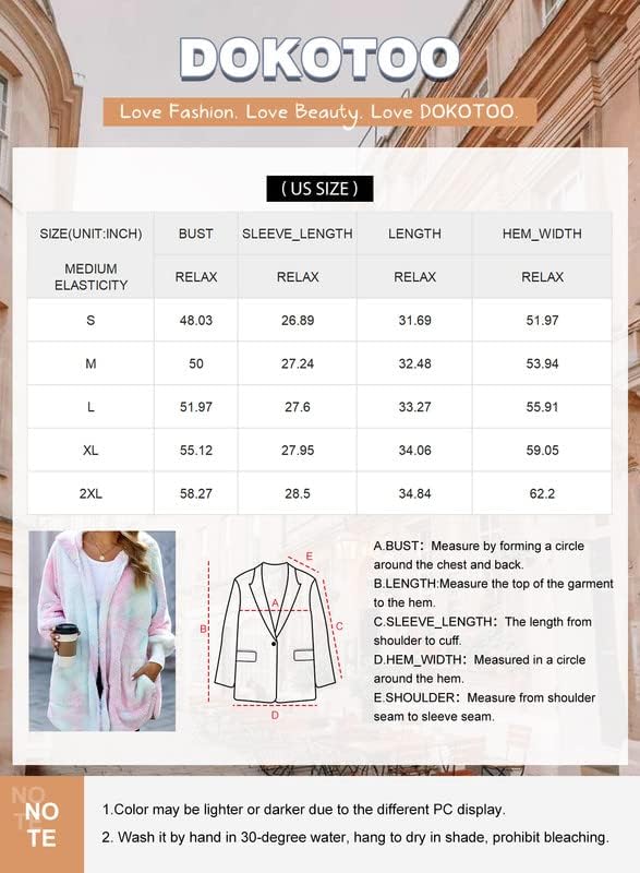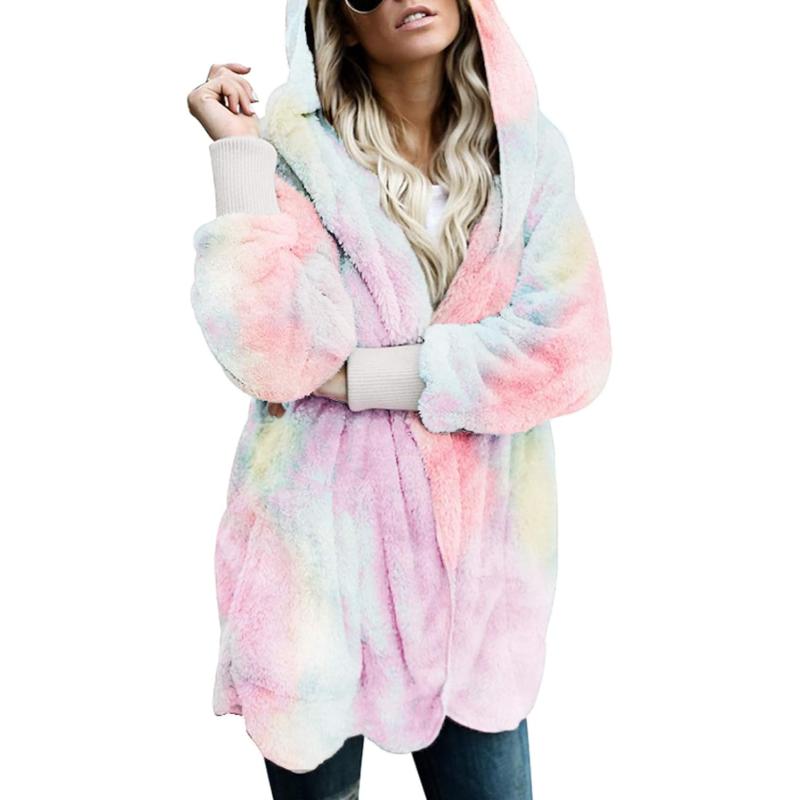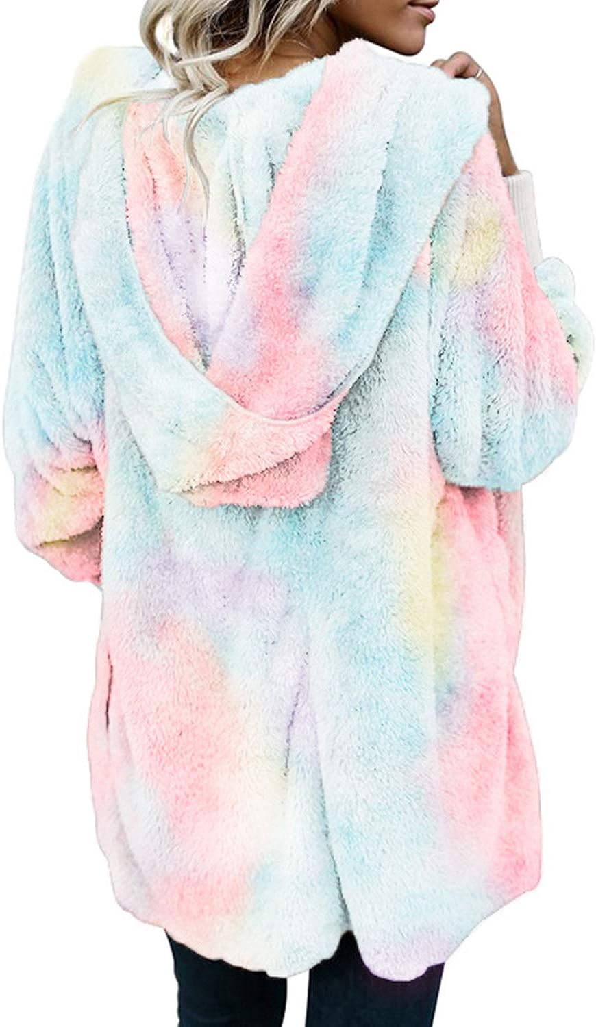 Dokotoo Womens 2023 Winter Long Sleeve Solid Fuzzy Fleece Open Front Hooded Cardigans Jacket Coats Outerwear with Pocket(Tie Dye Multicolor)