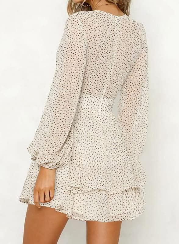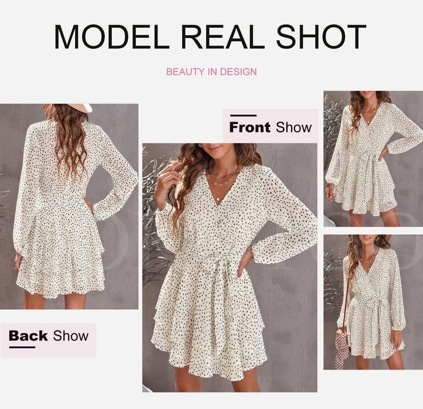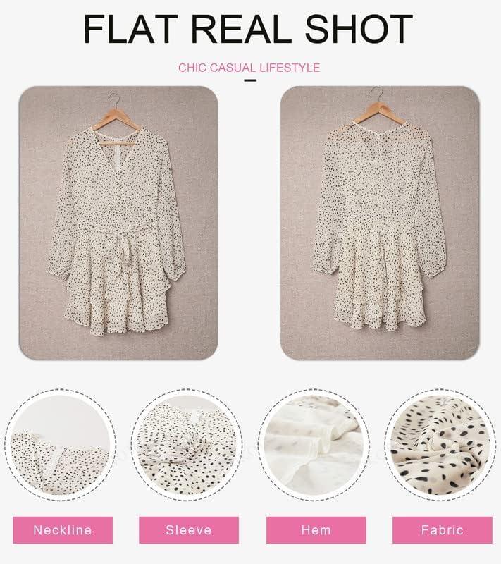 Dokotoo Womens 2024 Summer Spring V Neck Ruffle Chiffon Elegant Tie Knot Mini Short Swing Skater Dresses(1 Beige)
