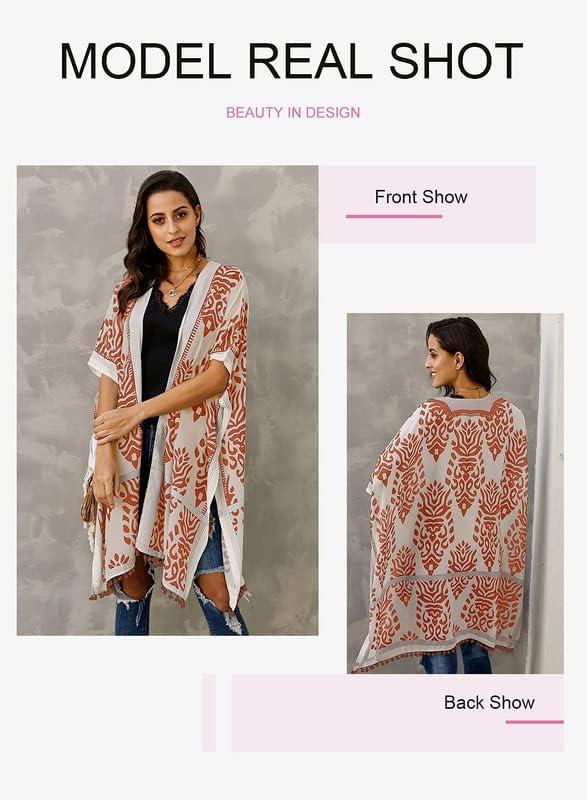Dokotoo Womens 2025 Summer Beach Hawaiian Vacation Long Kimono Cardigans Swimsuits Cover ups(A278 Orange)