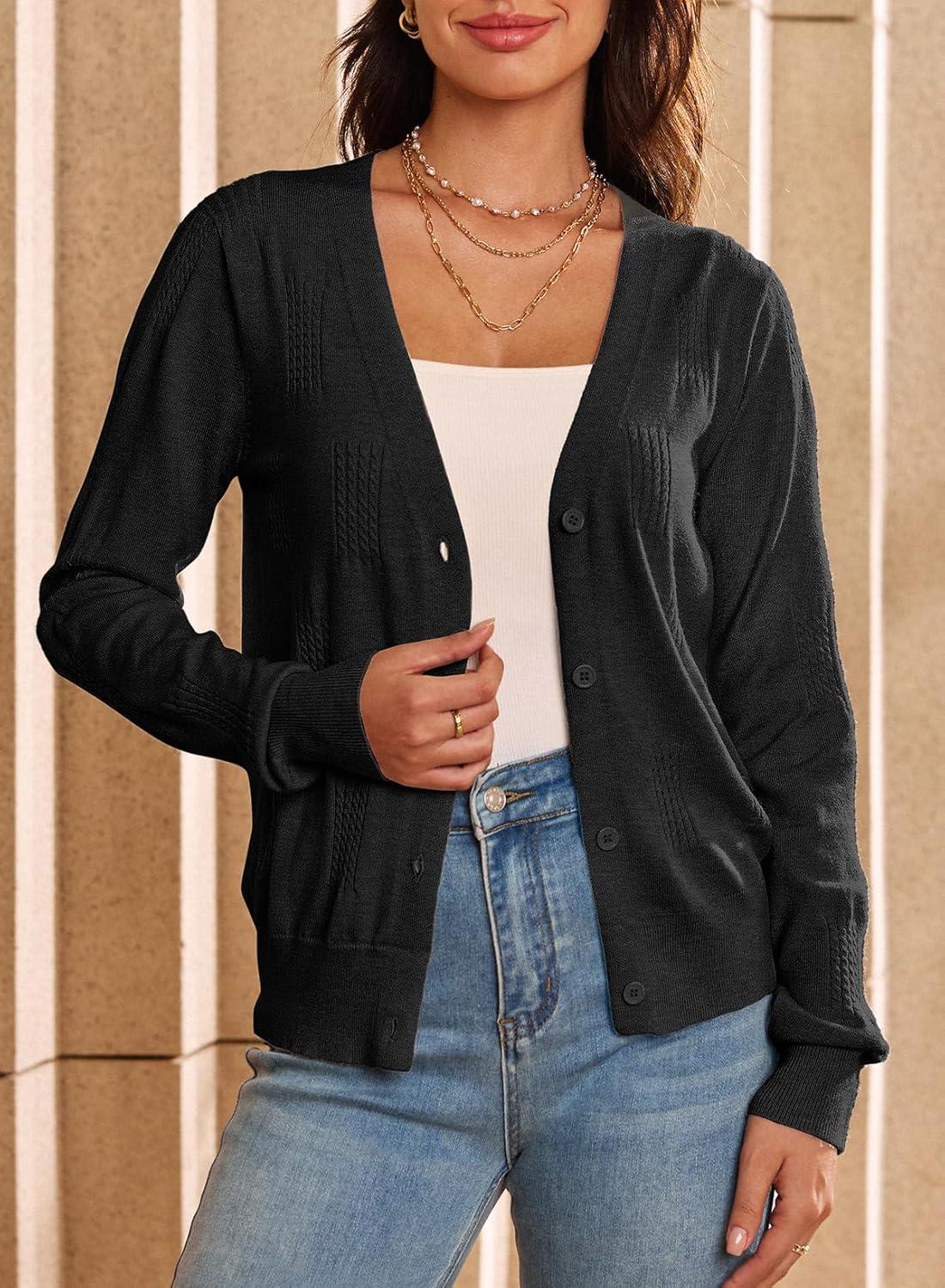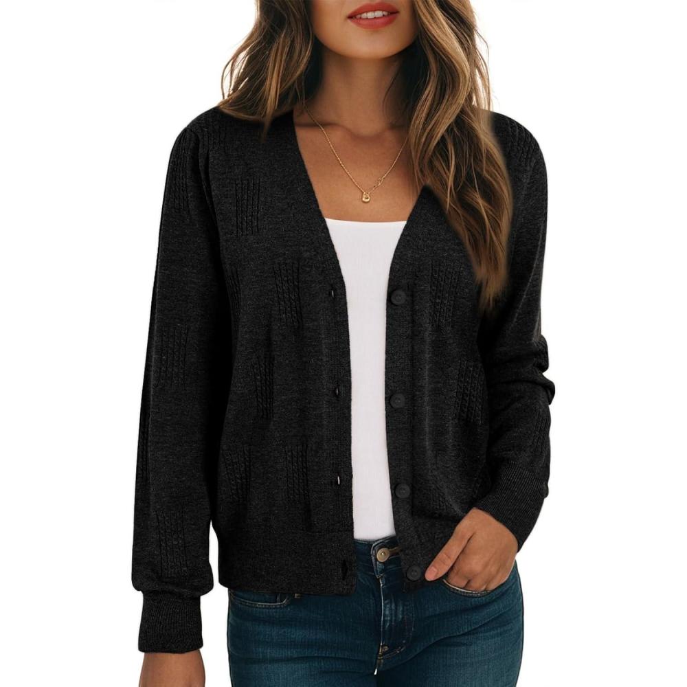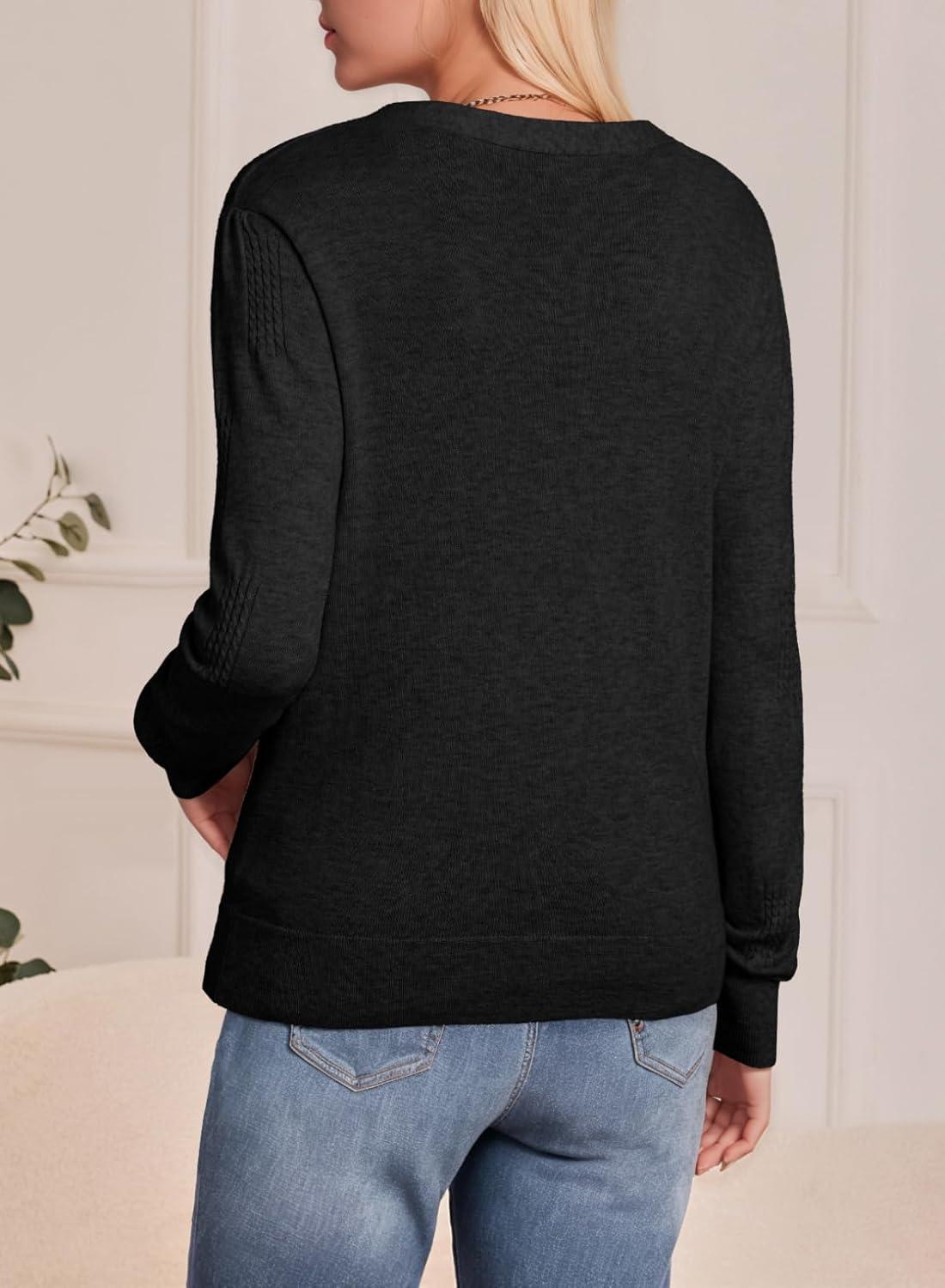 Dokotoo Women’s Cashmere Fall Long Sleeve Lightweight 2025 V-Neck Cardigan Button Down Twisted Cable Knit Shrugs Sweaters(Black)
