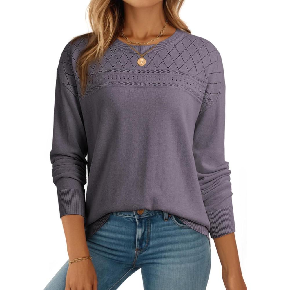 Dokotoo Women’s Casual 2025 Wool Hollow Out Fall Winter Sweaters Trendy Lightweight Crochet Pullover Tops(Orchid Mist)