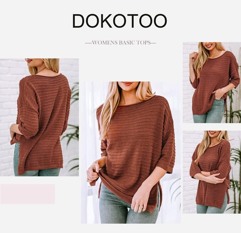 Get your hands on our exclusive Dokotoo Women’s Casual 3/4 Sleeve Loose Tunic Tops Lightweight Knit Fall Pulover Sweater Blouses(Brown) collection, now at a discounted price.