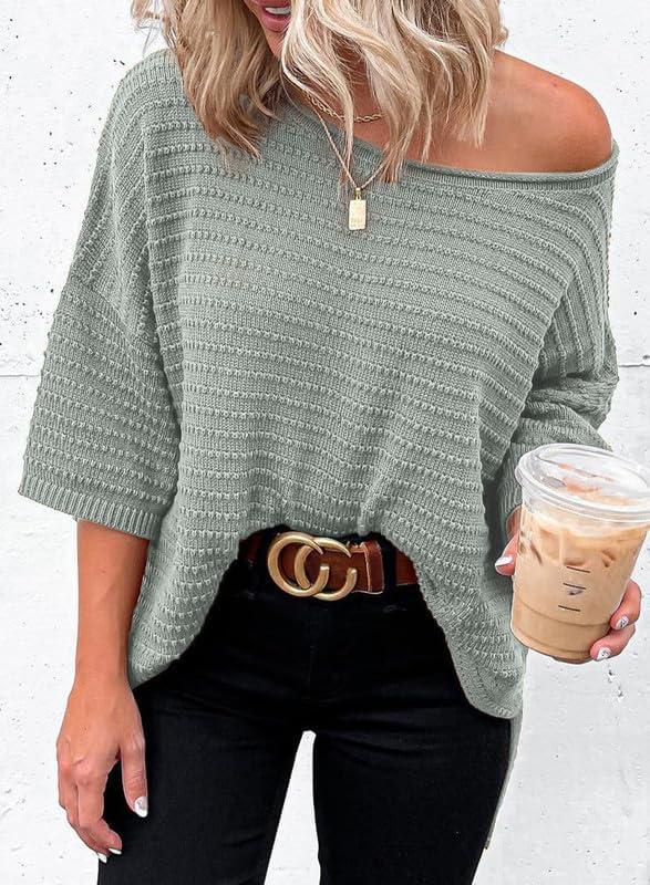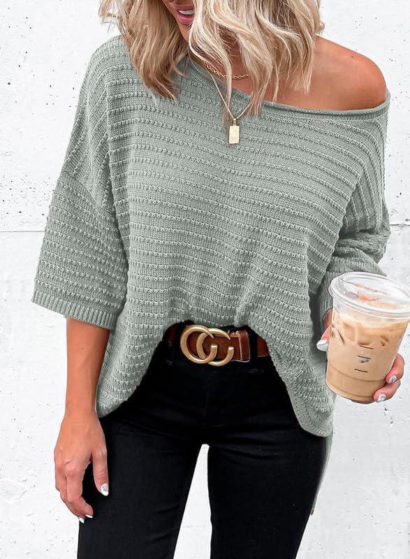 Dokotoo Women’s Casual 3/4 Sleeve Loose Tunic Tops Lightweight Knit Fall Pulover Sweater Blouses(Gray)