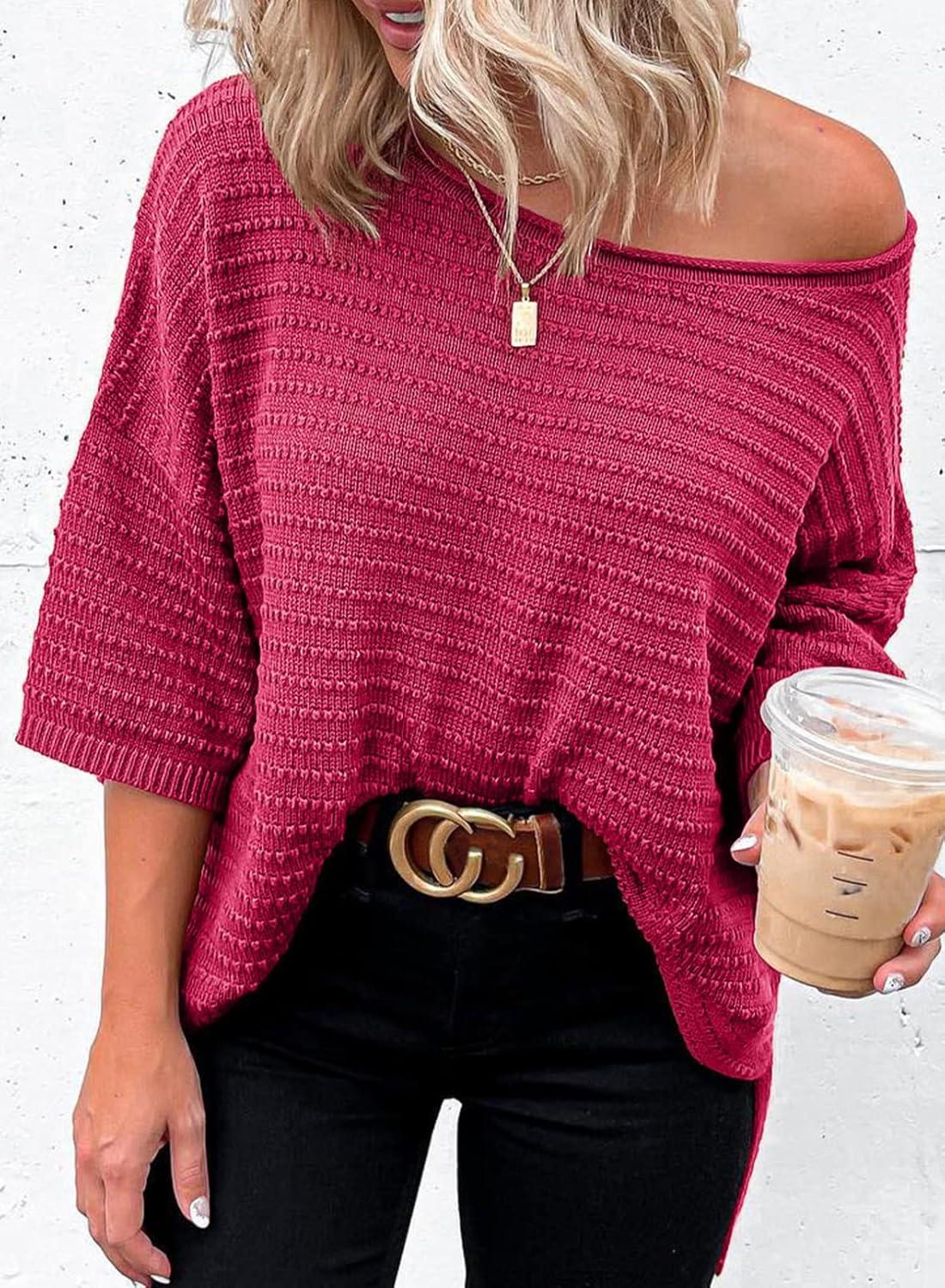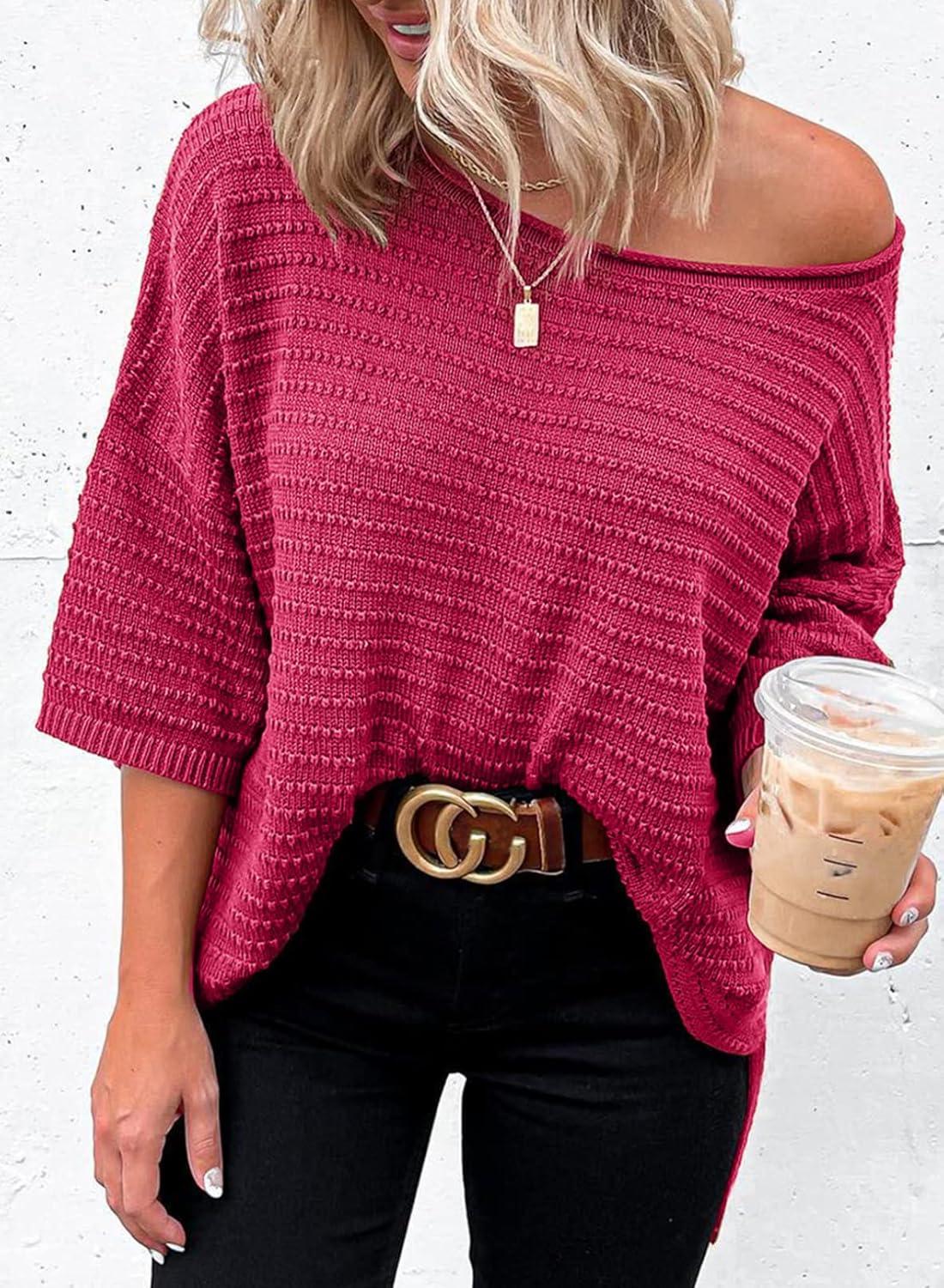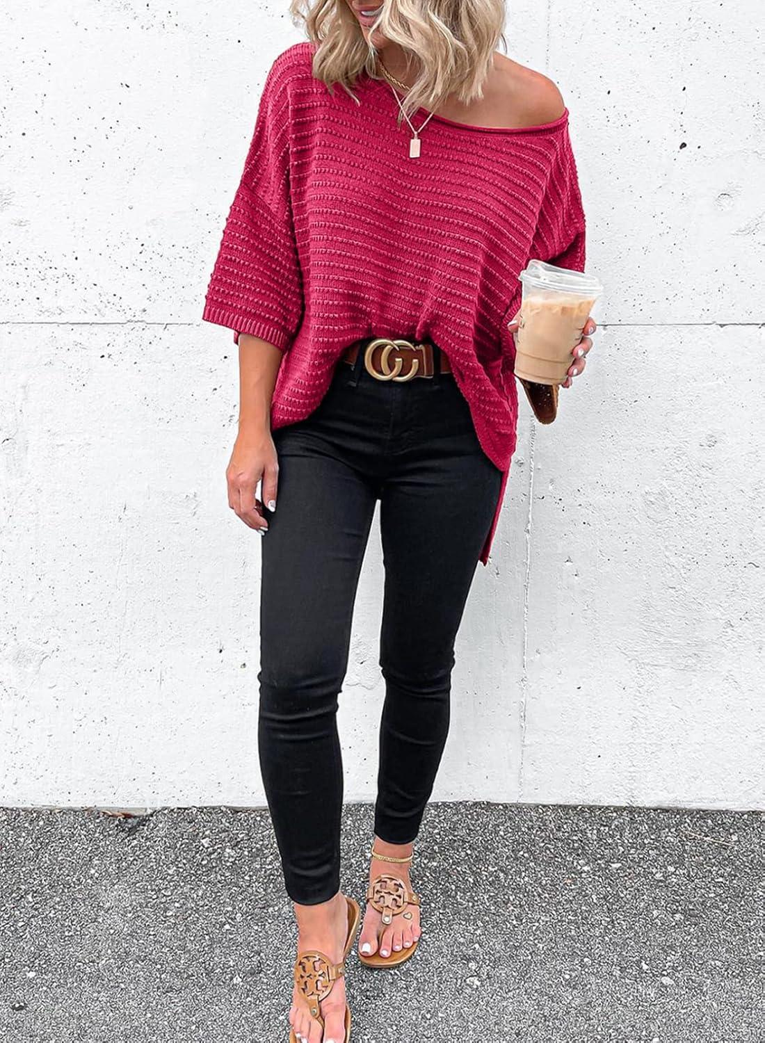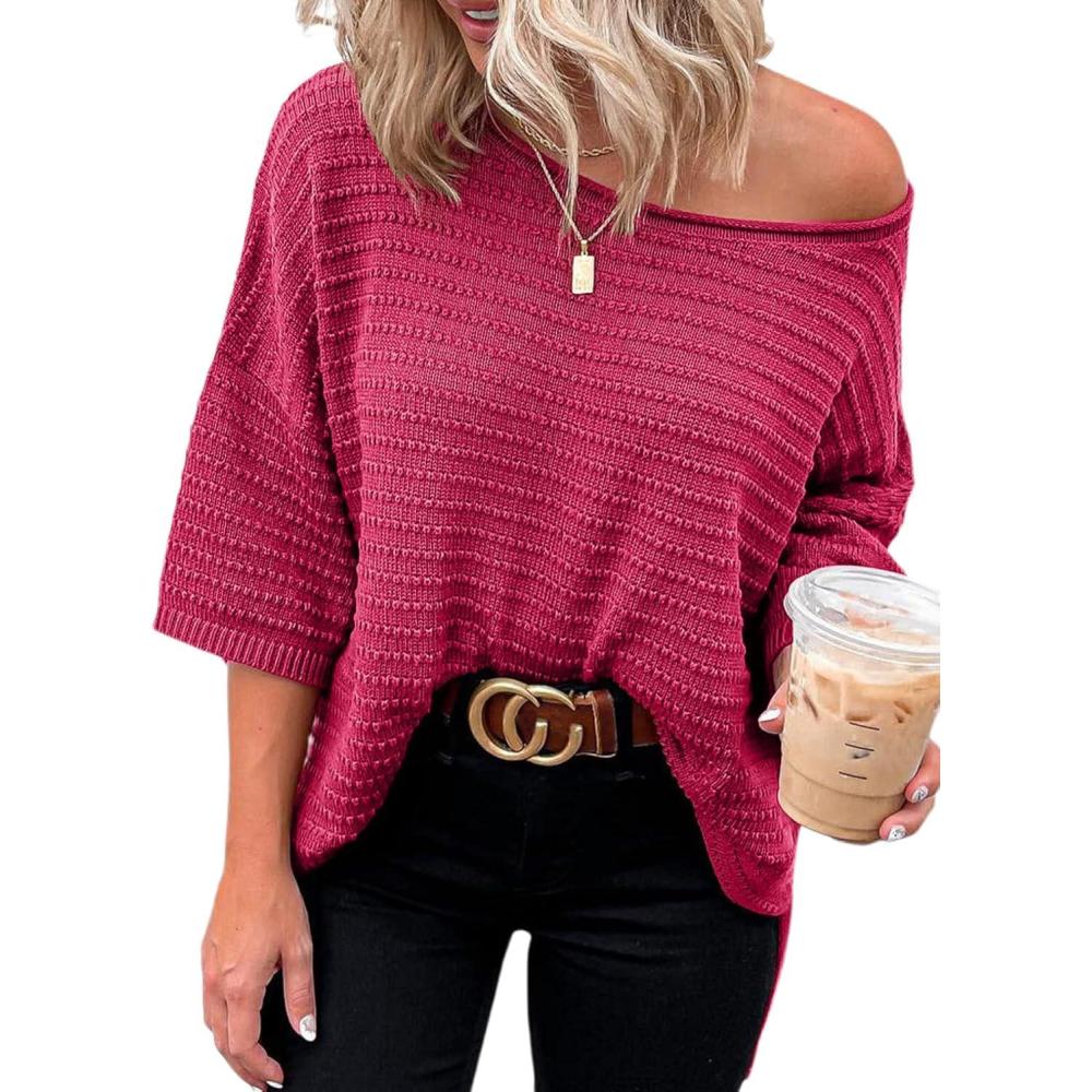 Dokotoo Women’s Casual 3/4 Sleeve Loose Tunic Tops Lightweight Knit Fall Pulover Sweater Blouses(Rose)