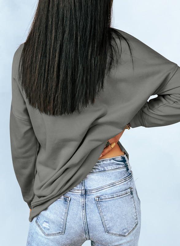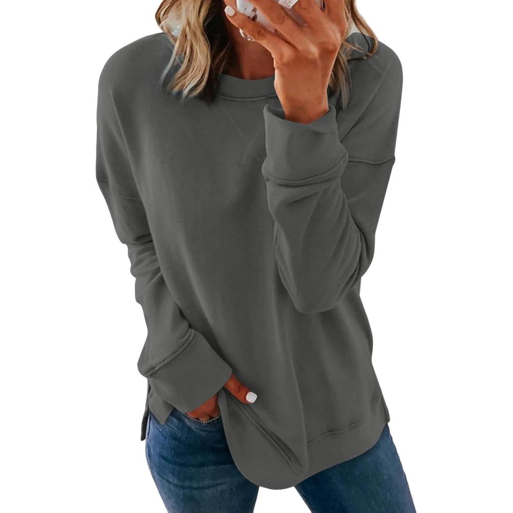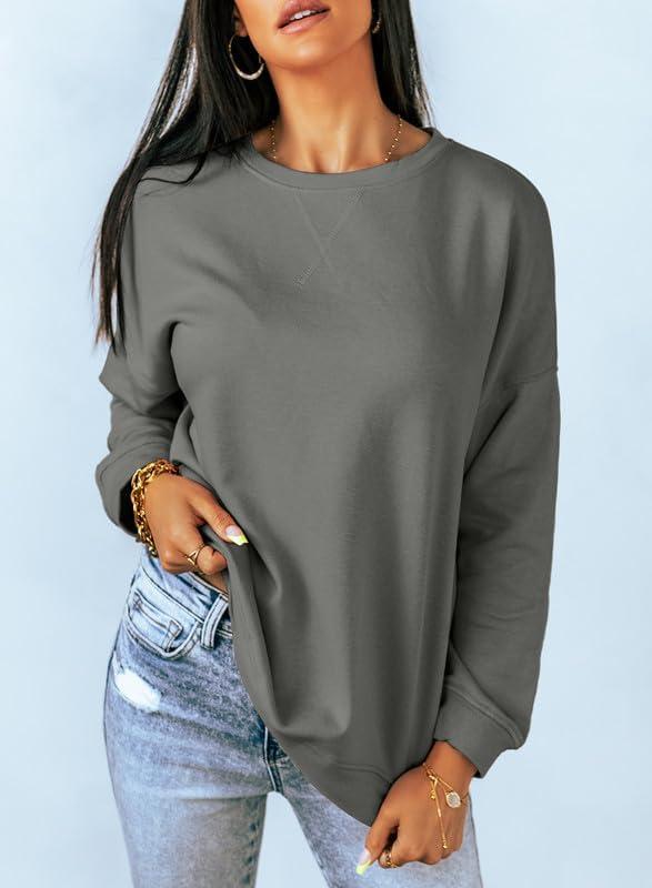 Dokotoo Women’s Casual Crew Neck Sweatshirt Loose Soft Long Sleeve Pullover Tops(A Dark Grey)