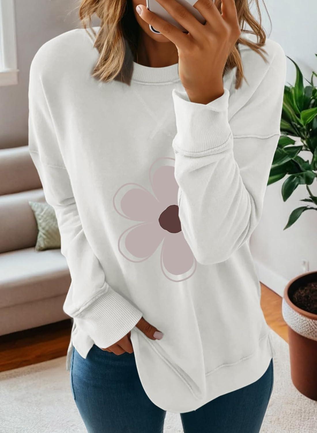 Dokotoo Women’s Casual Crew Neck Sweatshirt Loose Soft Long Sleeve Pullover Tops(D White 4)