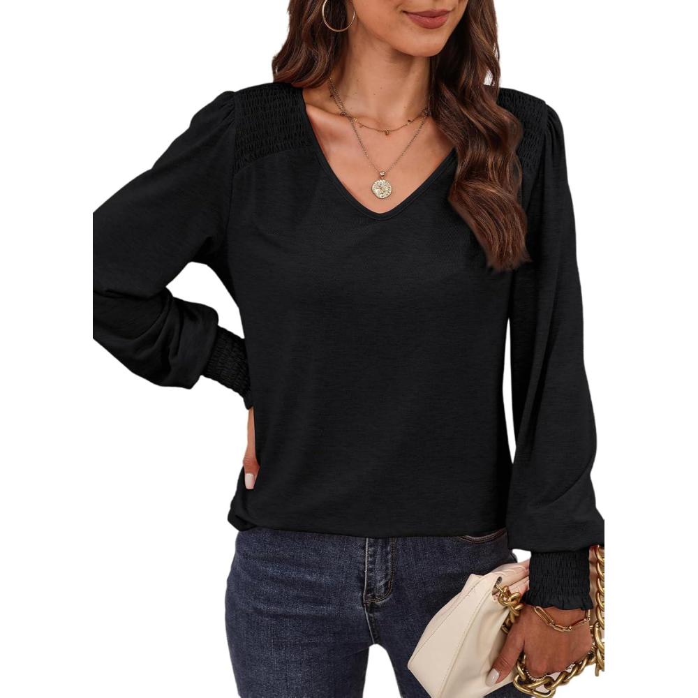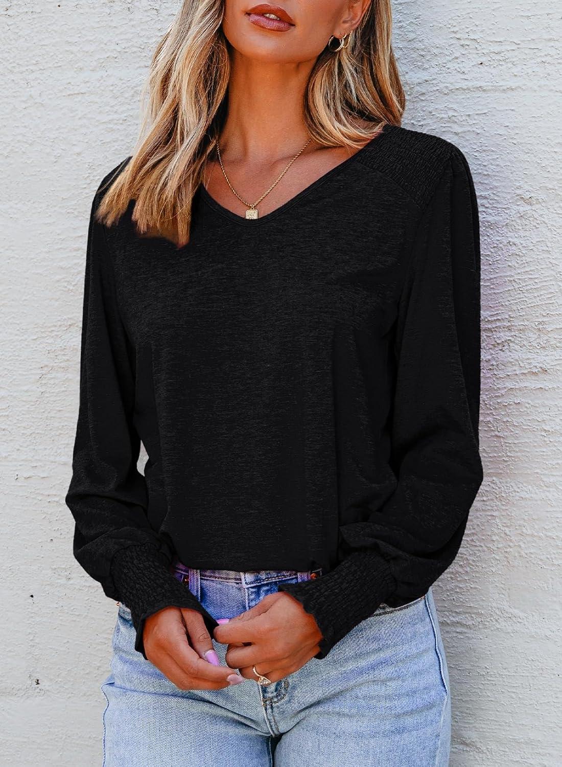 Get more for your money with our exclusive bundle deals on Dokotoo Women’s Casual Long Sleeve Shirts Shirred Shoulders Solid Color Knit Tops Blouses(Black) and accessories.