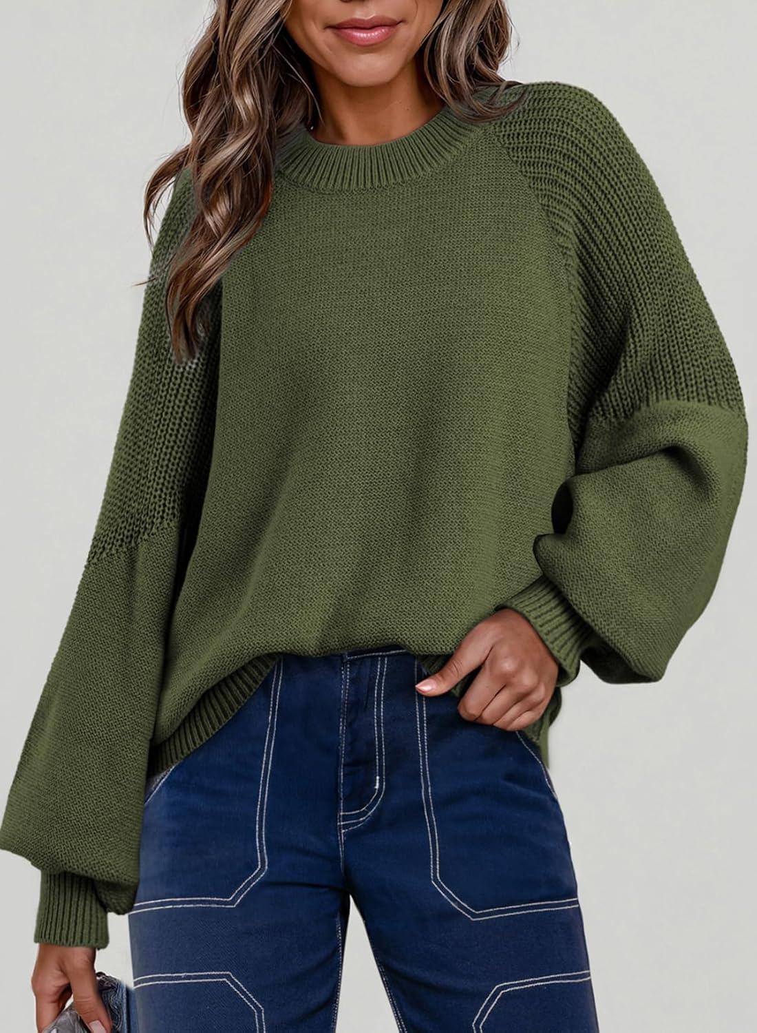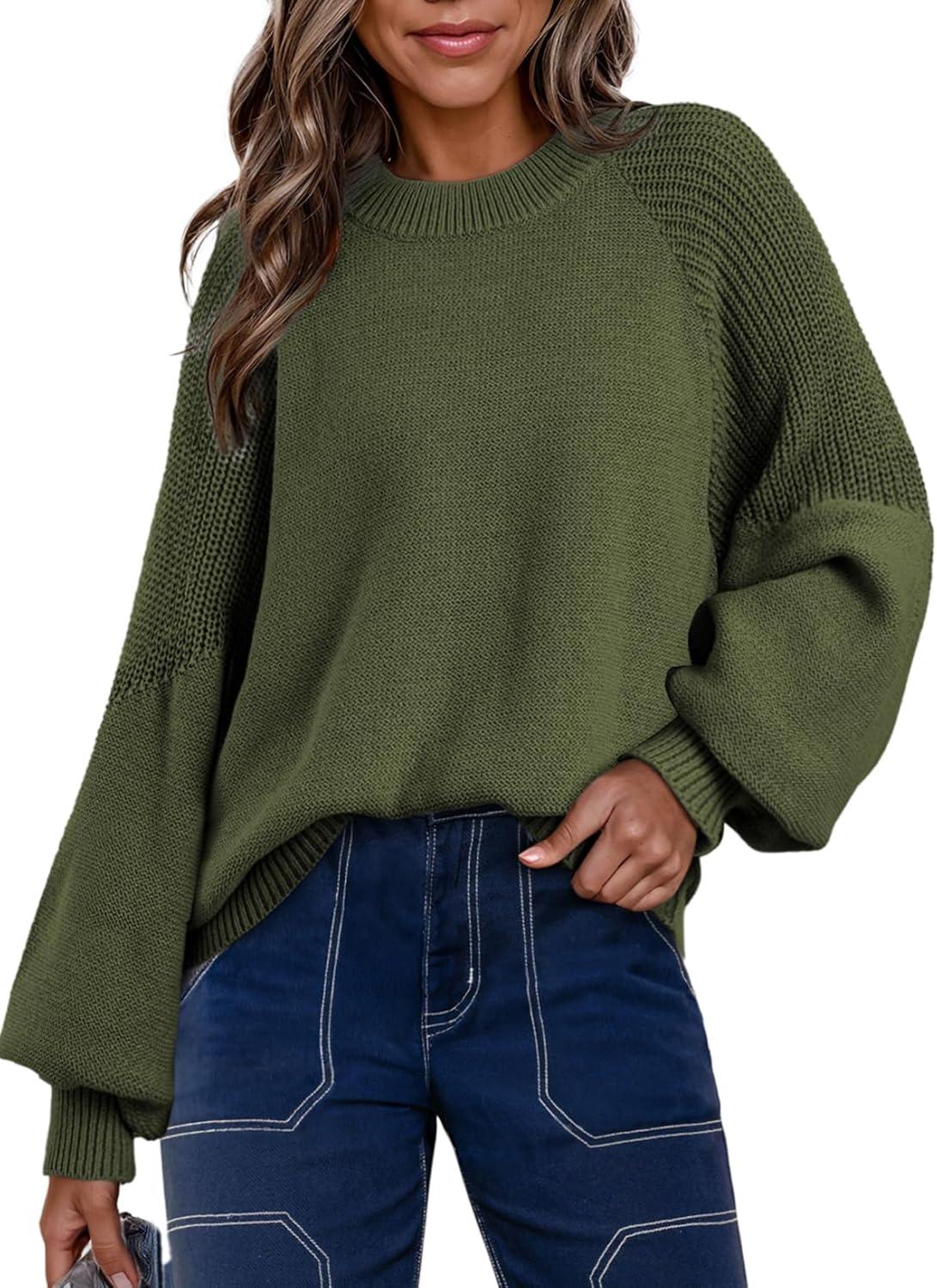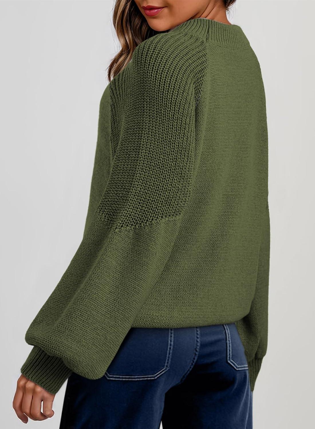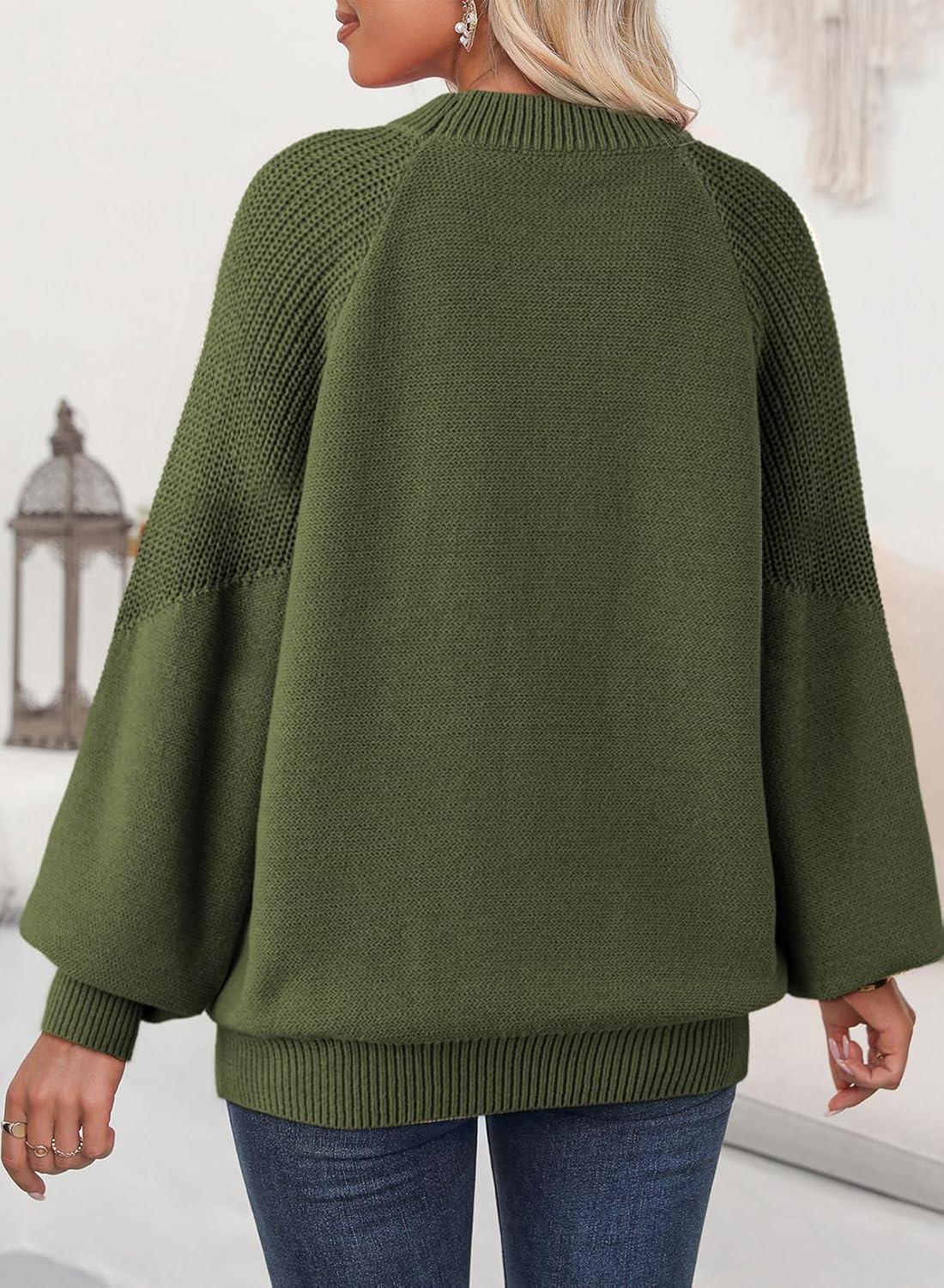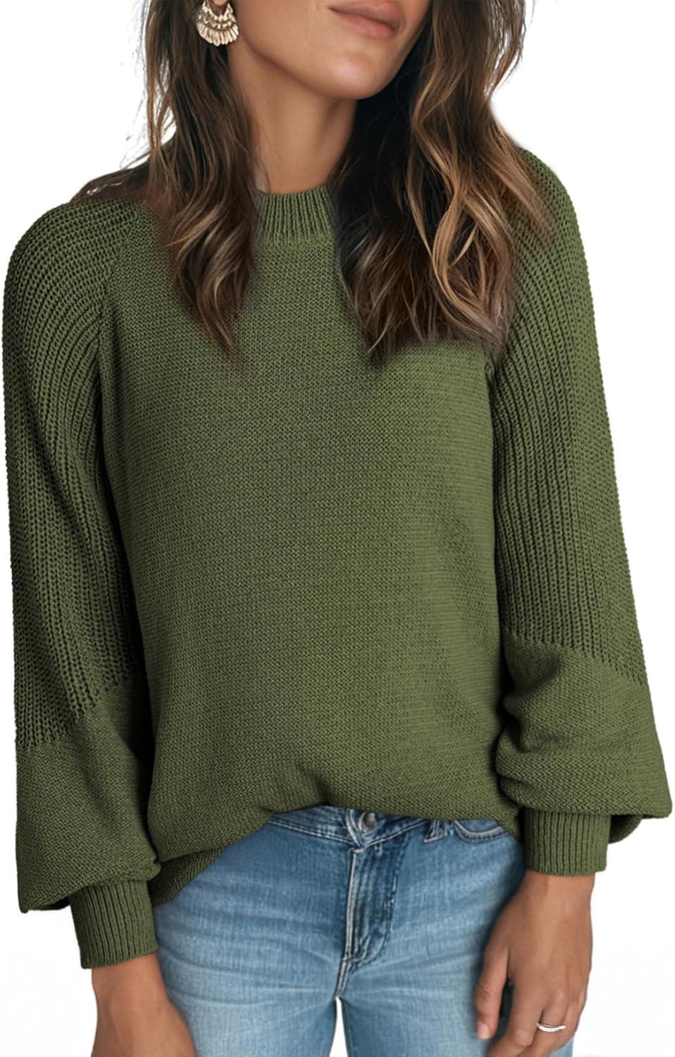 Dokotoo Women’s Casual Long Sleeve Sweaters Loose Crewneck Cable Knit Pullover Sweater Jumper Tops(Green)