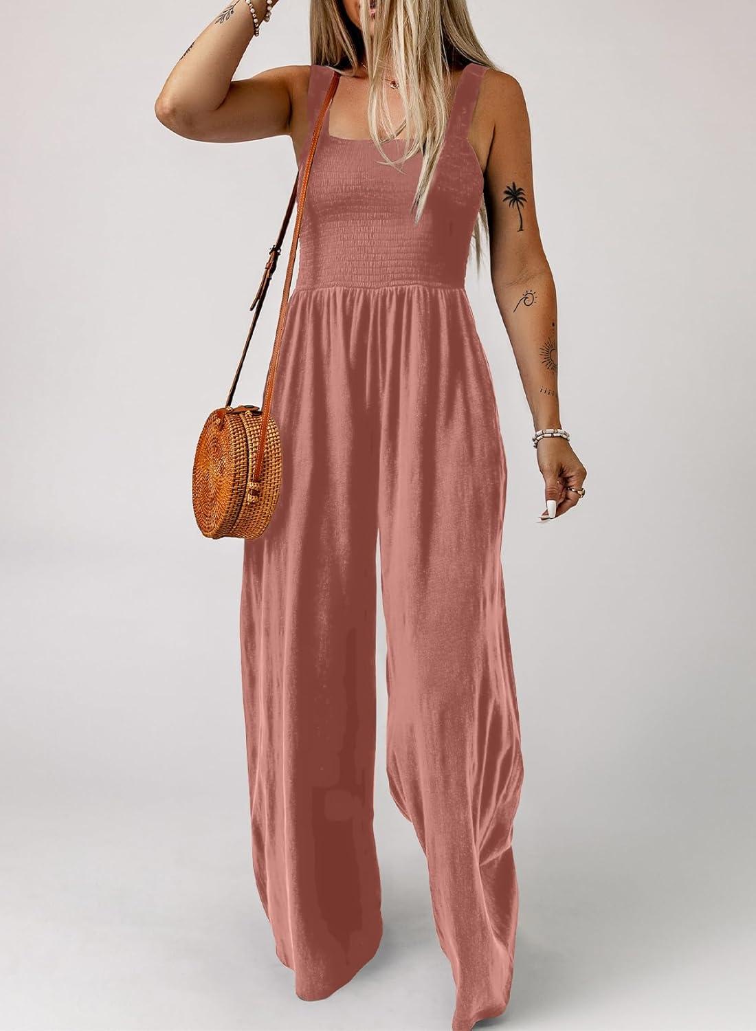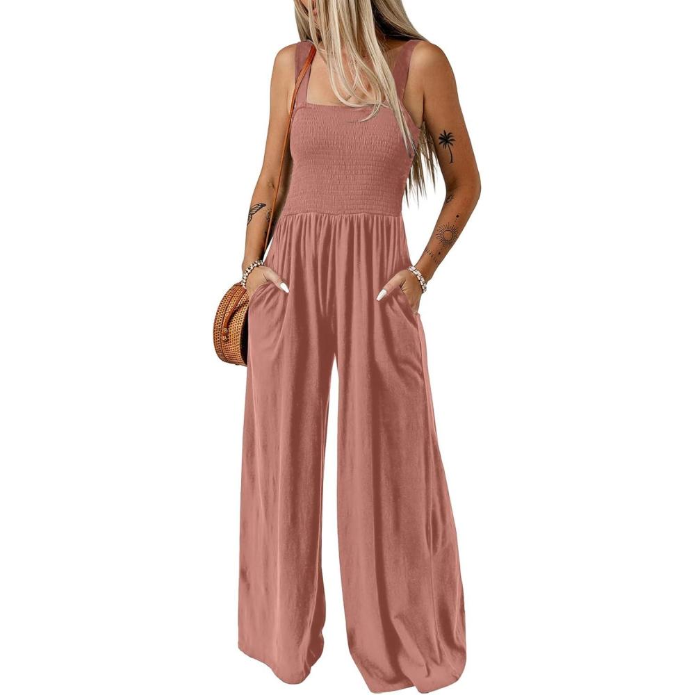 Dokotoo Women’s Casual Loose Overalls Jumpsuits One Piece Sleeveless Wide Leg Long Pant Rompers With Pockets(Rose Pink)