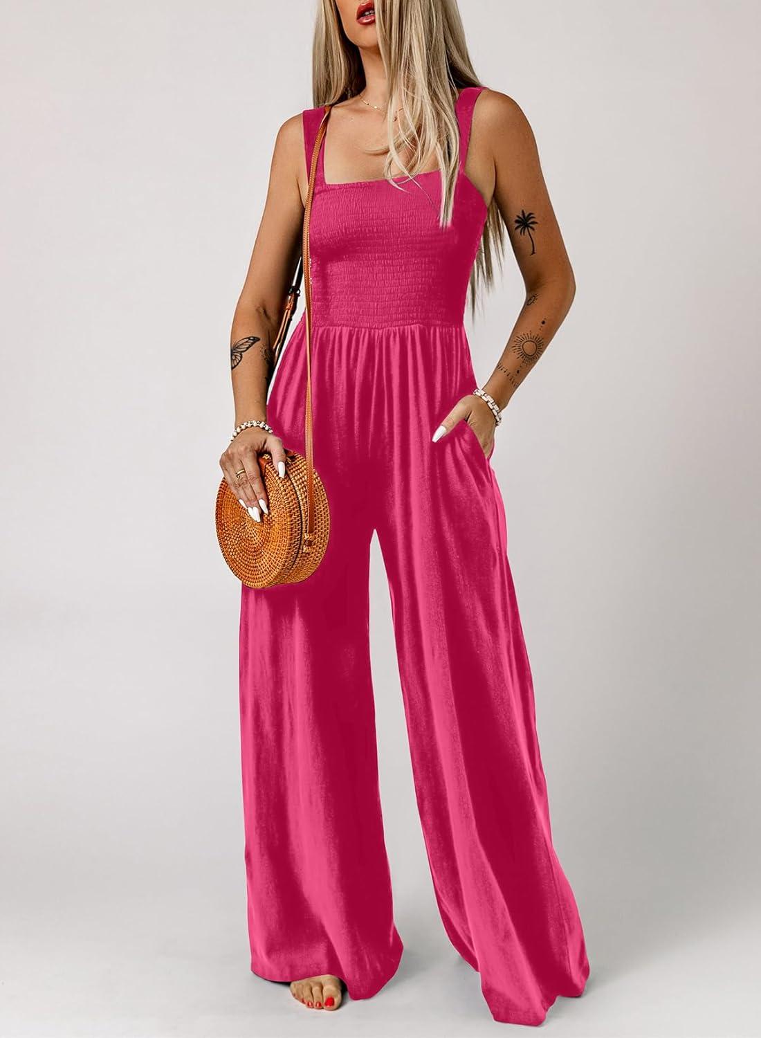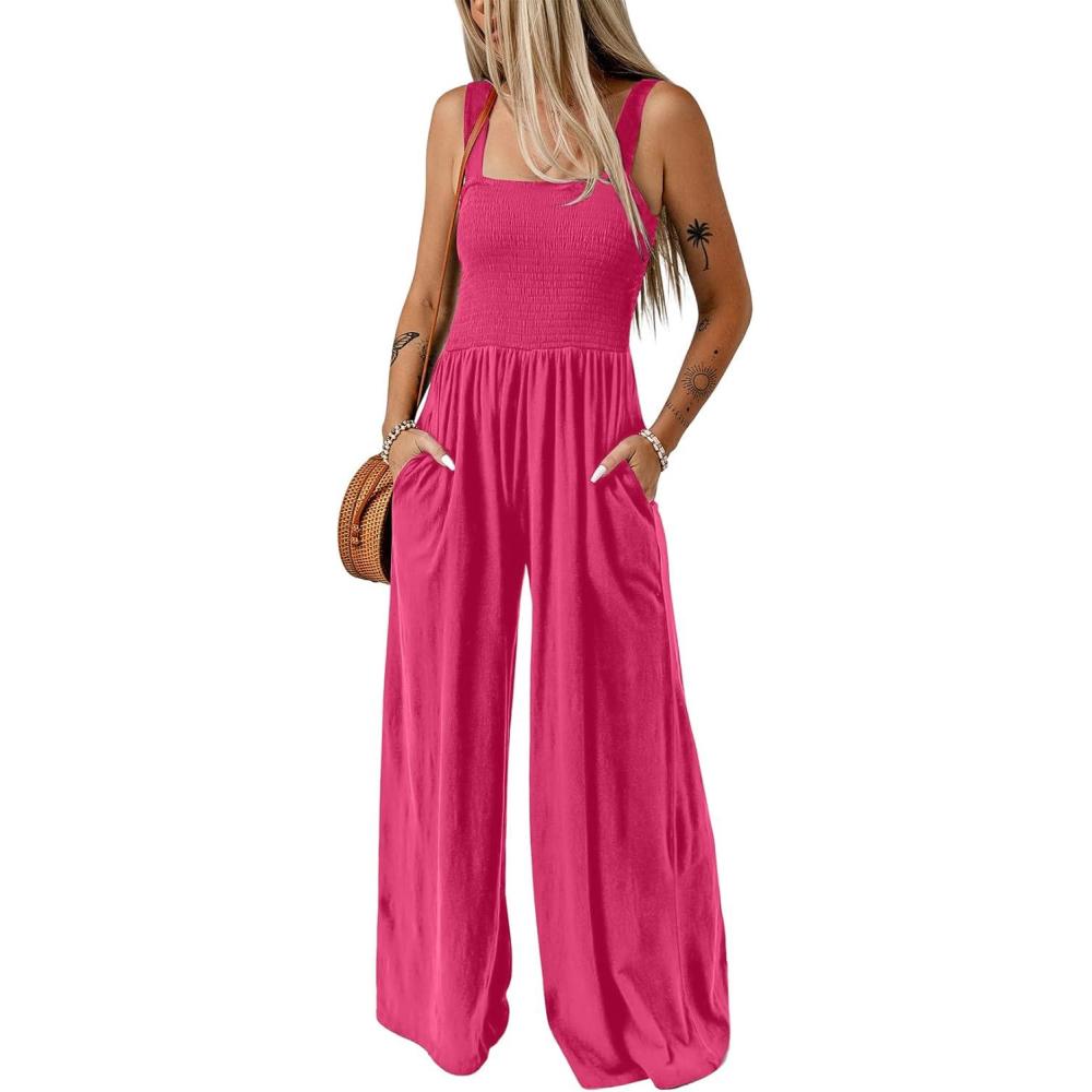 Dokotoo Women’s Casual Loose Overalls Jumpsuits One Piece Sleeveless Wide Leg Long Pant Rompers With Pockets(Rose)