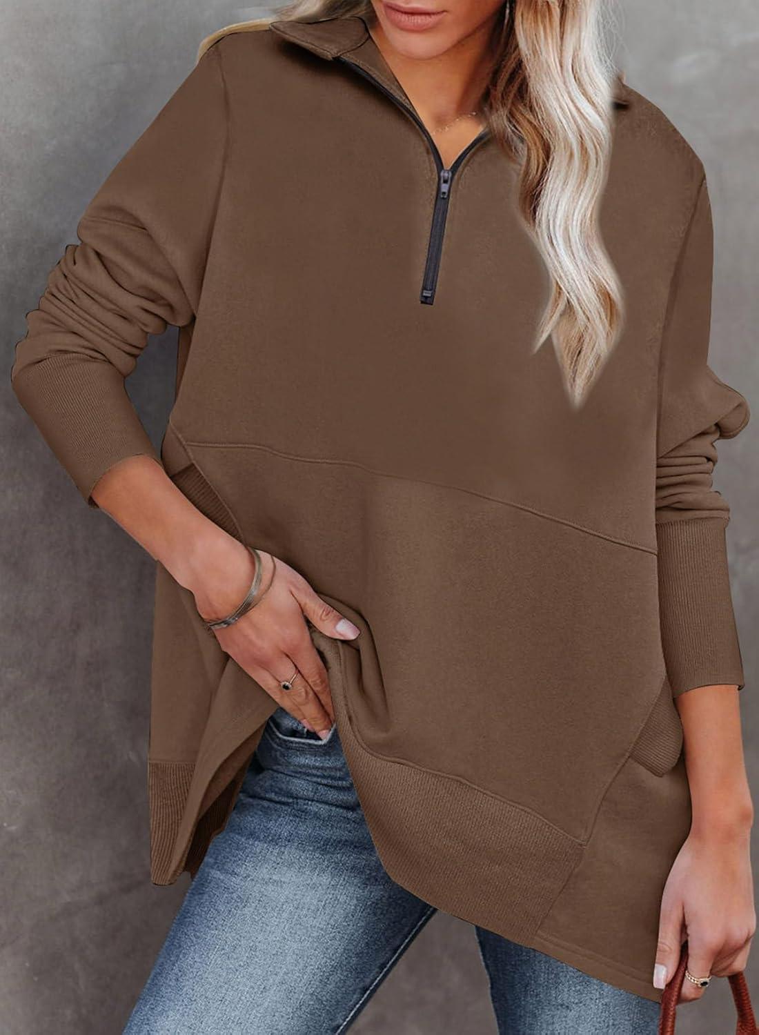 Don’t miss out on our limited-time offer: buy Dokotoo Women’s Casual Oversized Half Zip Sweatshirts Long Sleeve Solid Color Pullover Jackets with Pockets(Dark Brown), get {accessory} free!