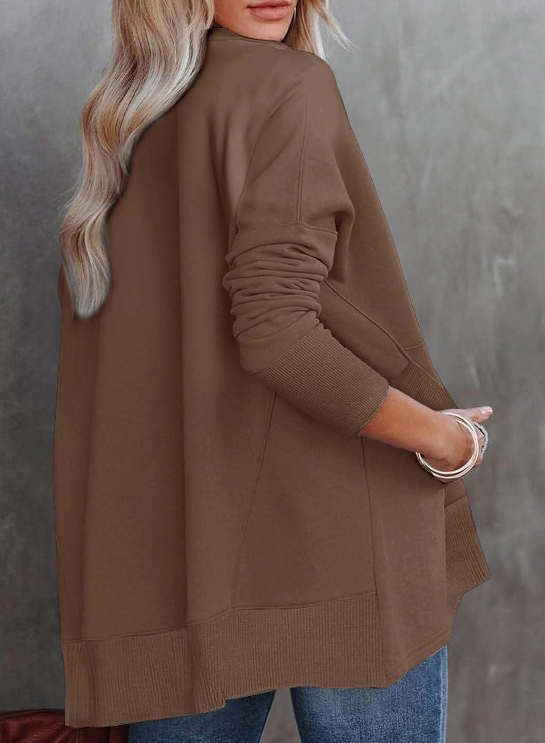 Dokotoo Women’s Casual Oversized Half Zip Sweatshirts Long Sleeve Solid Color Pullover Jackets with Pockets(Dark Brown)