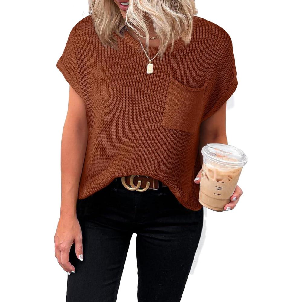 Dokotoo Women’s Casual Short Sleeve Loose Tunic Tops Lightweight Knit Spring Pullover Sweater Blouses(Brown)