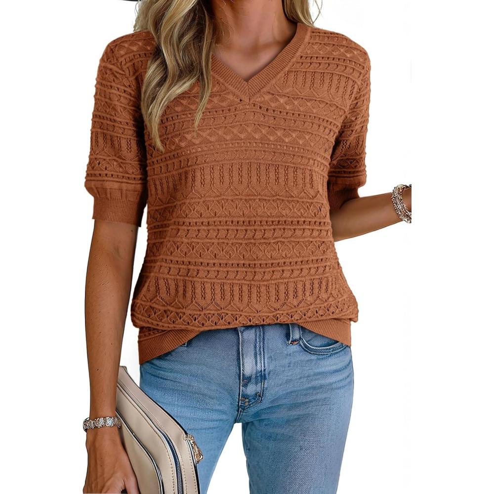 imageDokotoo Womens Casual Short Sleeve Loose Tunic Tops Lightweight Knit Spring Summer Pullover Sweater BlousesGrey