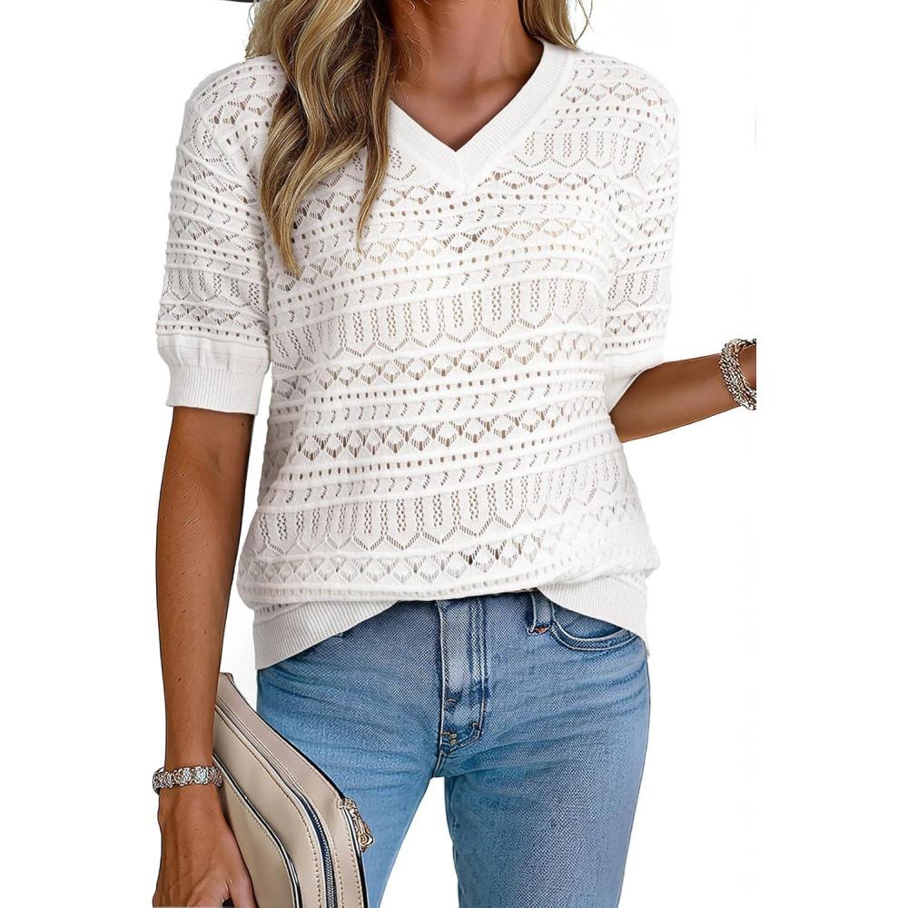 Dokotoo Women’s Casual Short Sleeve Loose Tunic Tops Lightweight Knit Spring Summer Pullover Sweater Blouses(White)