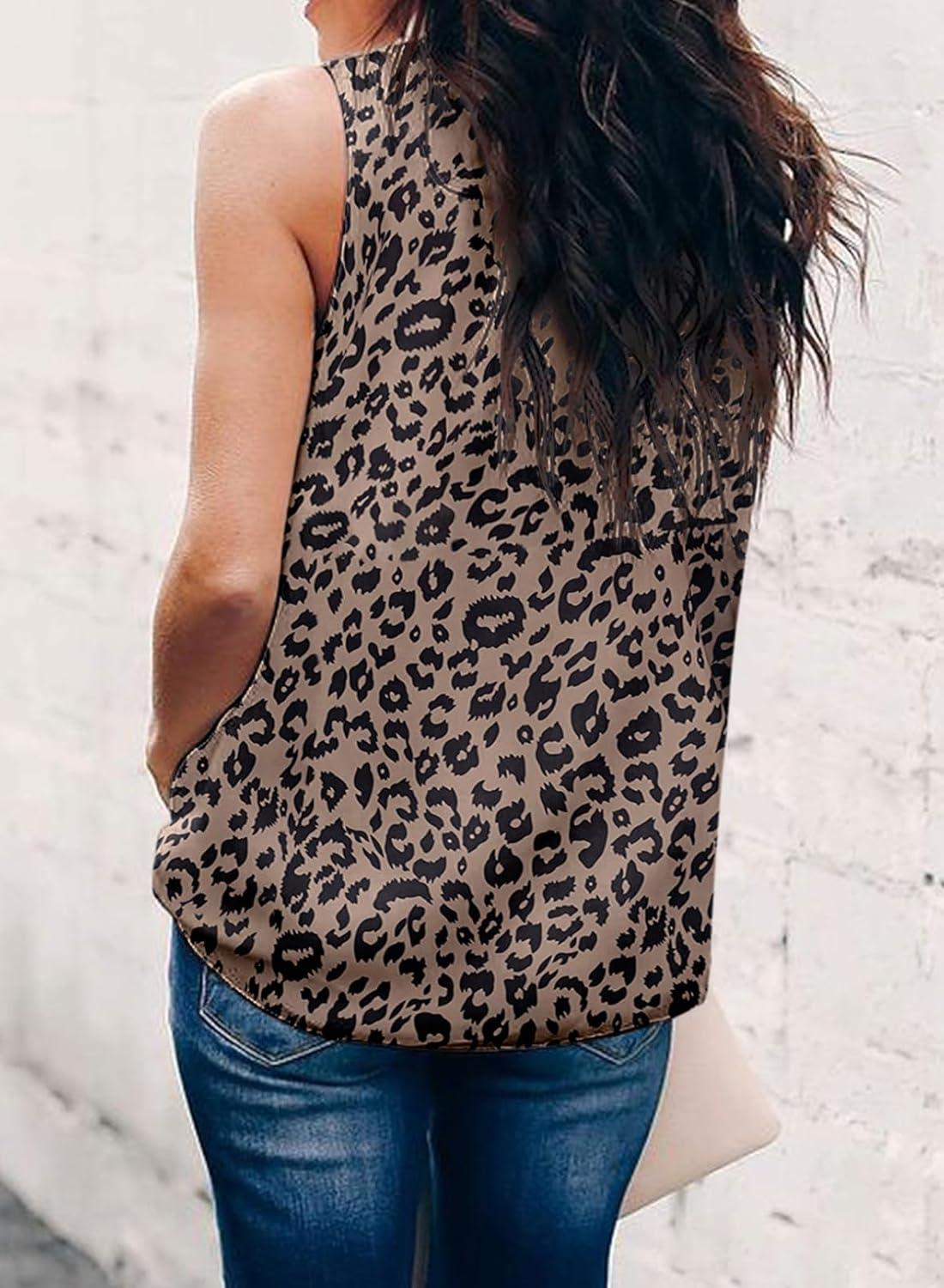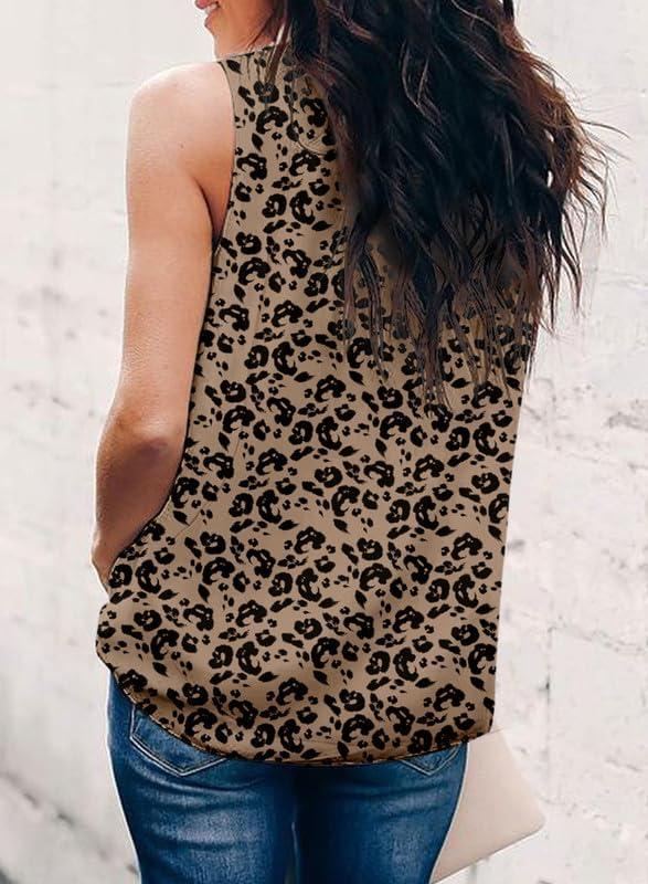 Dokotoo Womens Casual Sleeveless Shirts Halter Neck Leopard Print Tank Top and Blouses(Leopard)