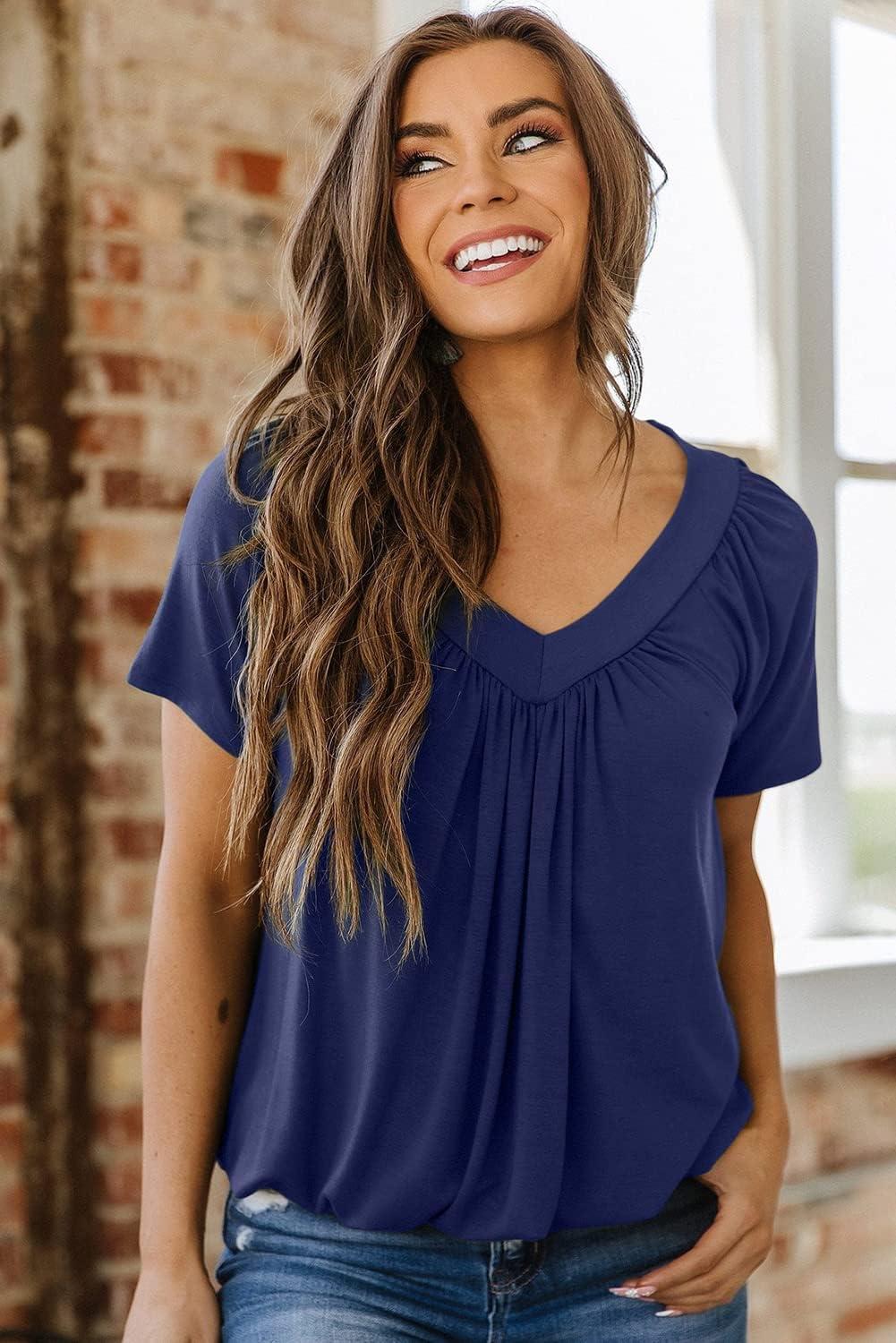 Dokotoo Women’s Casual Summer T Shirts Short Sleeve V Neck Tops Tshirts(Blue)
