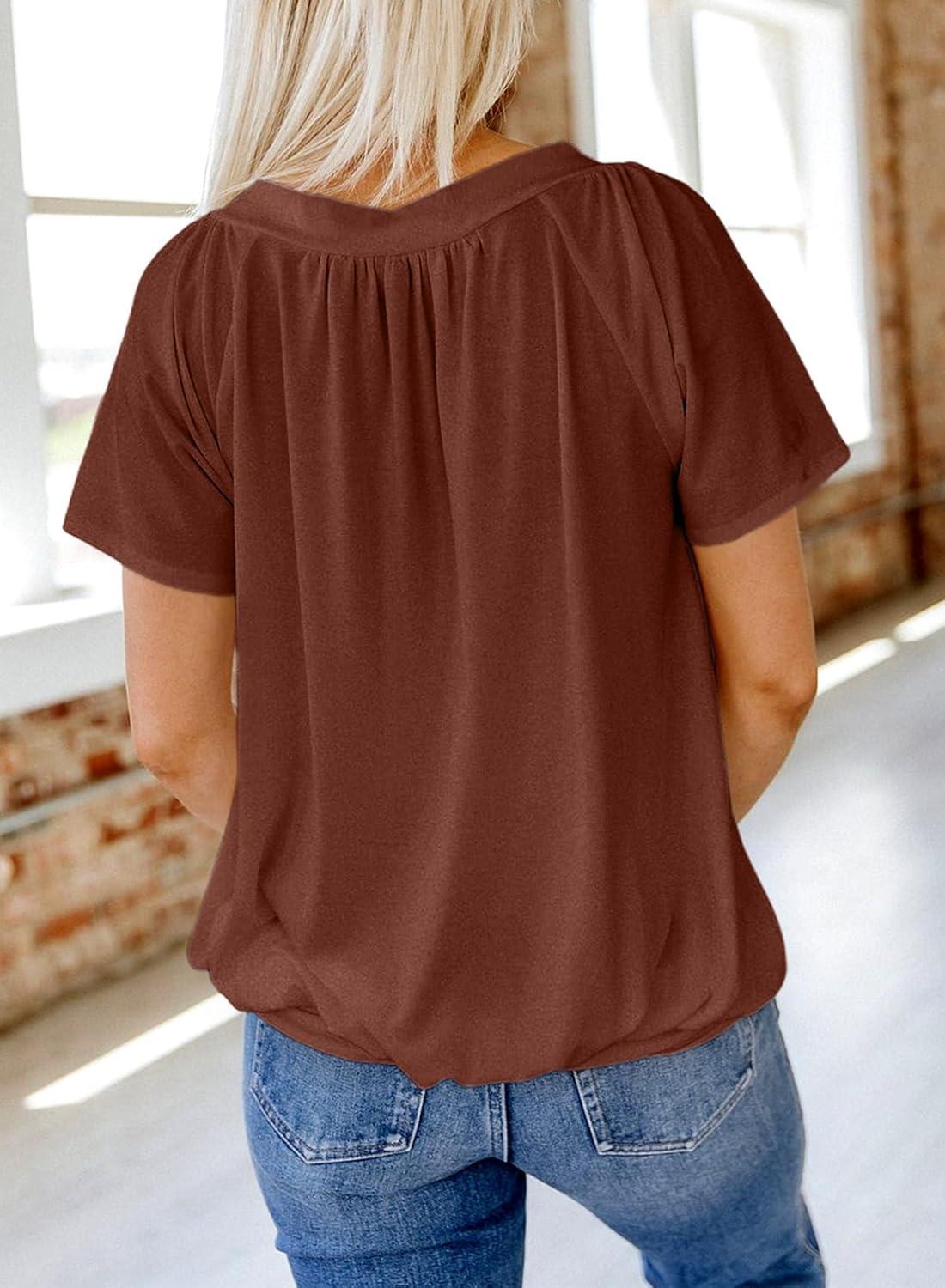 Dokotoo Women’s Casual Summer T Shirts Short Sleeve V Neck Tops Tshirts(Brown)