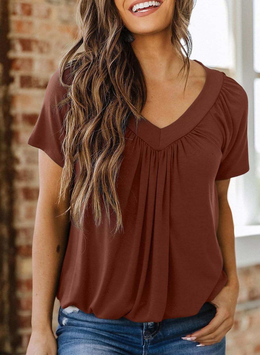 Get up to 70% off on Dokotoo Women’s Casual Summer T Shirts Short Sleeve V Neck Tops Tshirts(Brown) styles during our end-of-season clearance event.