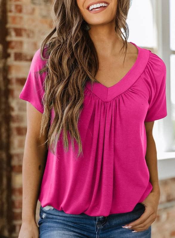Dokotoo Women’s Casual Summer T Shirts Short Sleeve V Neck Tops Tshirts(Rose)